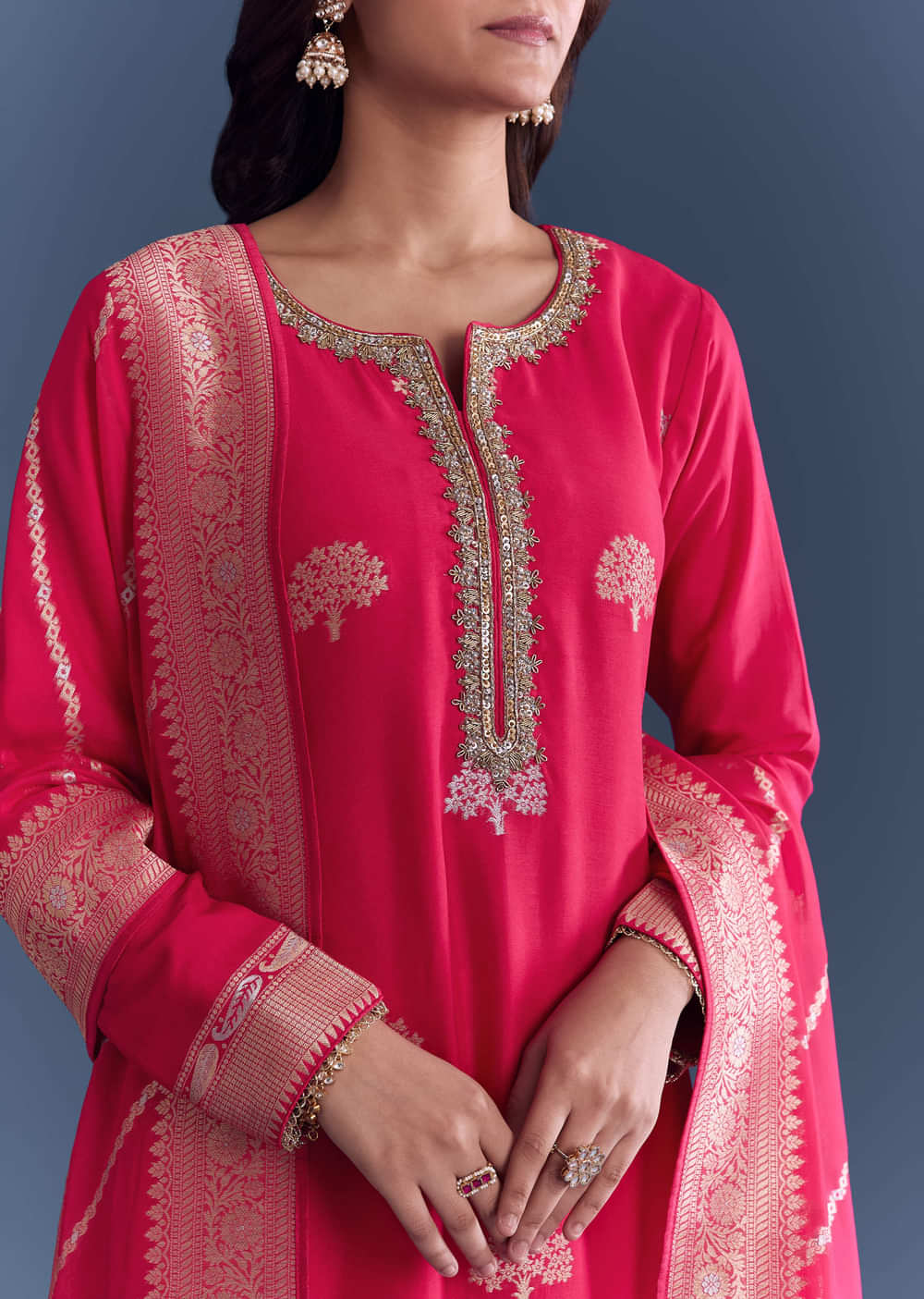 When elegance needs clear craft, this pink silk kurta set frames the silhouette with a refined sheen. Banarasi weave provides heritage detail that reads premium in every light. You feel... More Product Details