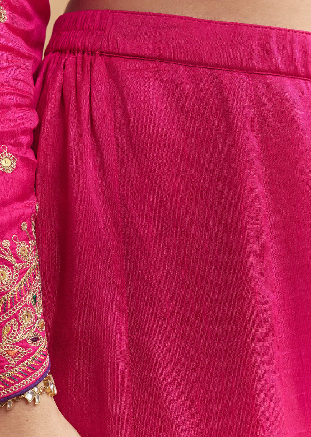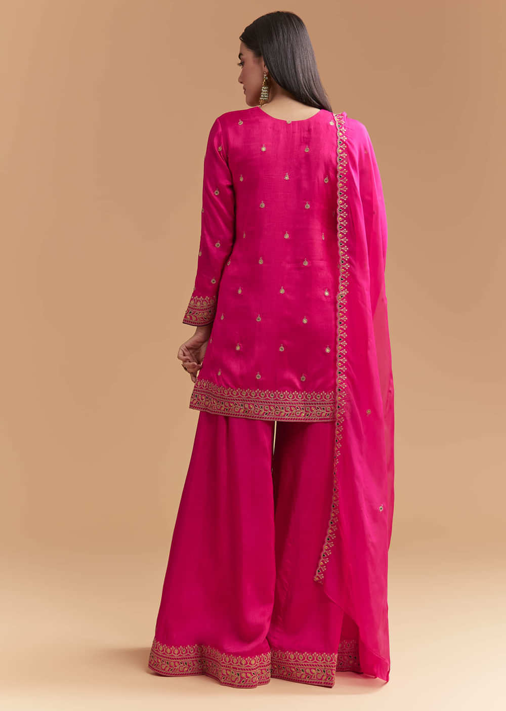 Pink Silk Palazzo Suit With Intricate Zari Work