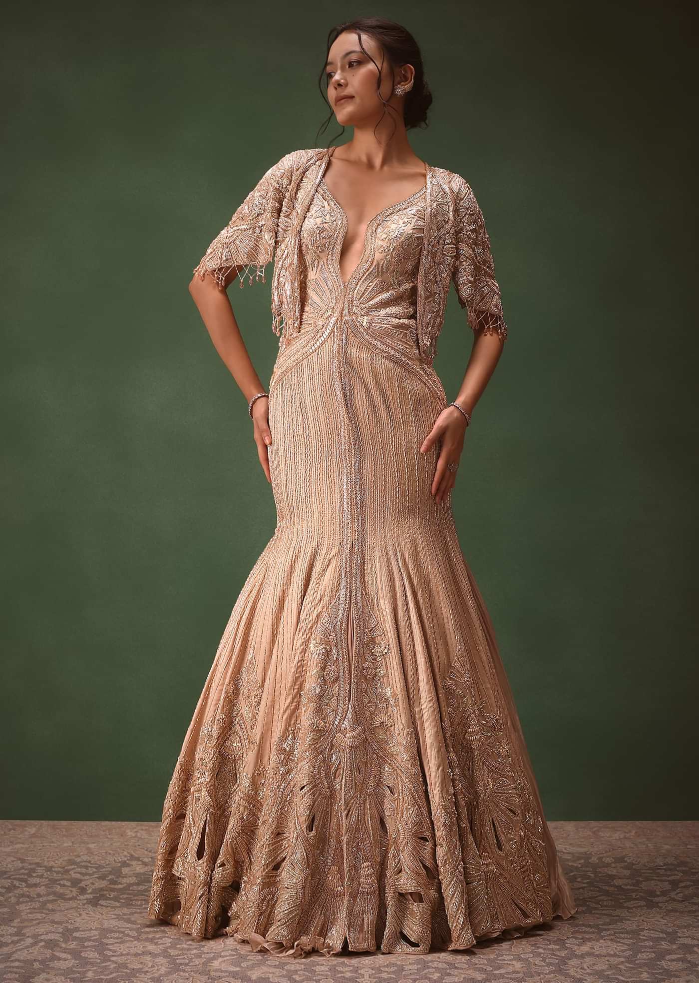Pink Tissue Cutdana Fishcut Lehenga With Cape And Jacket