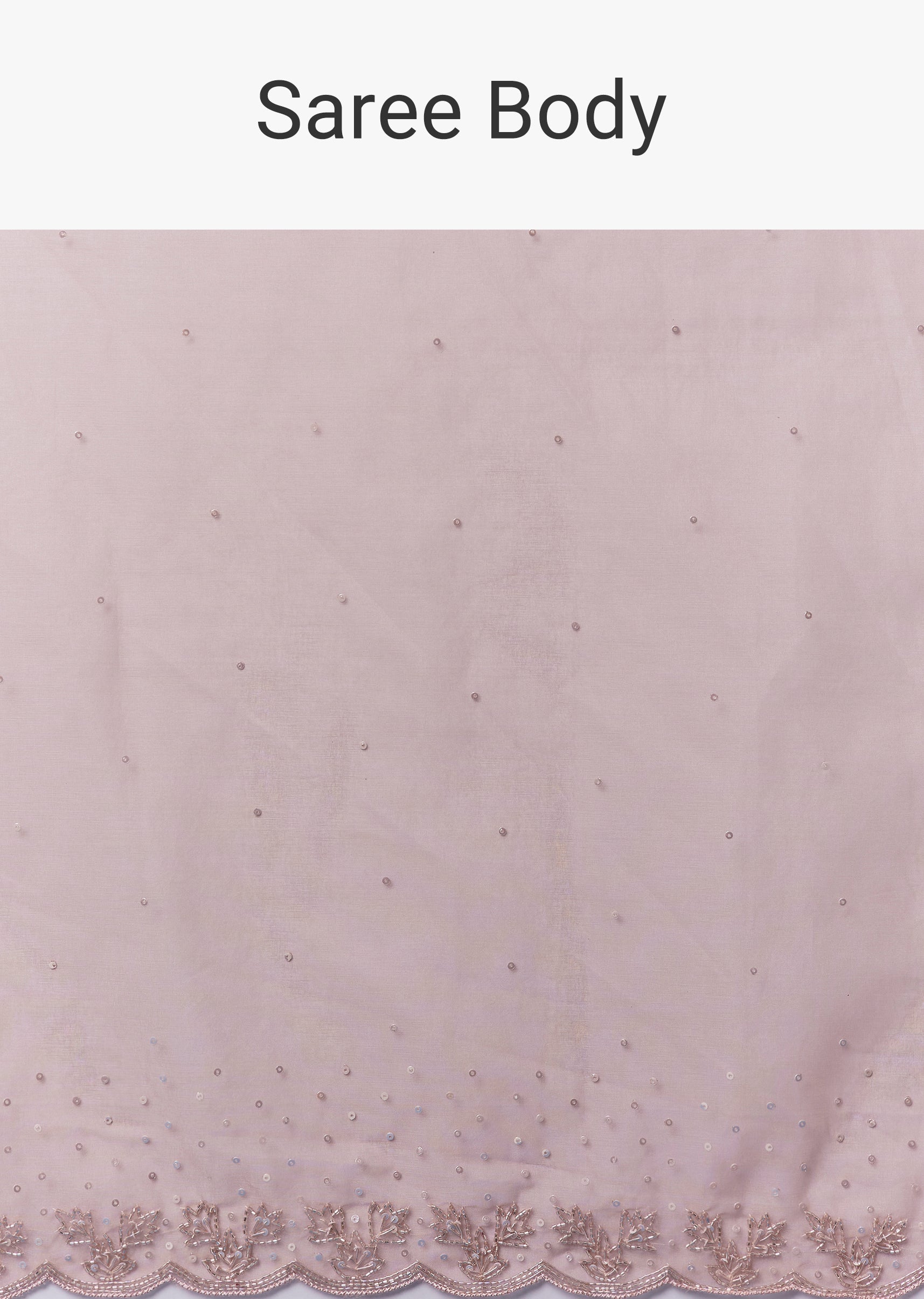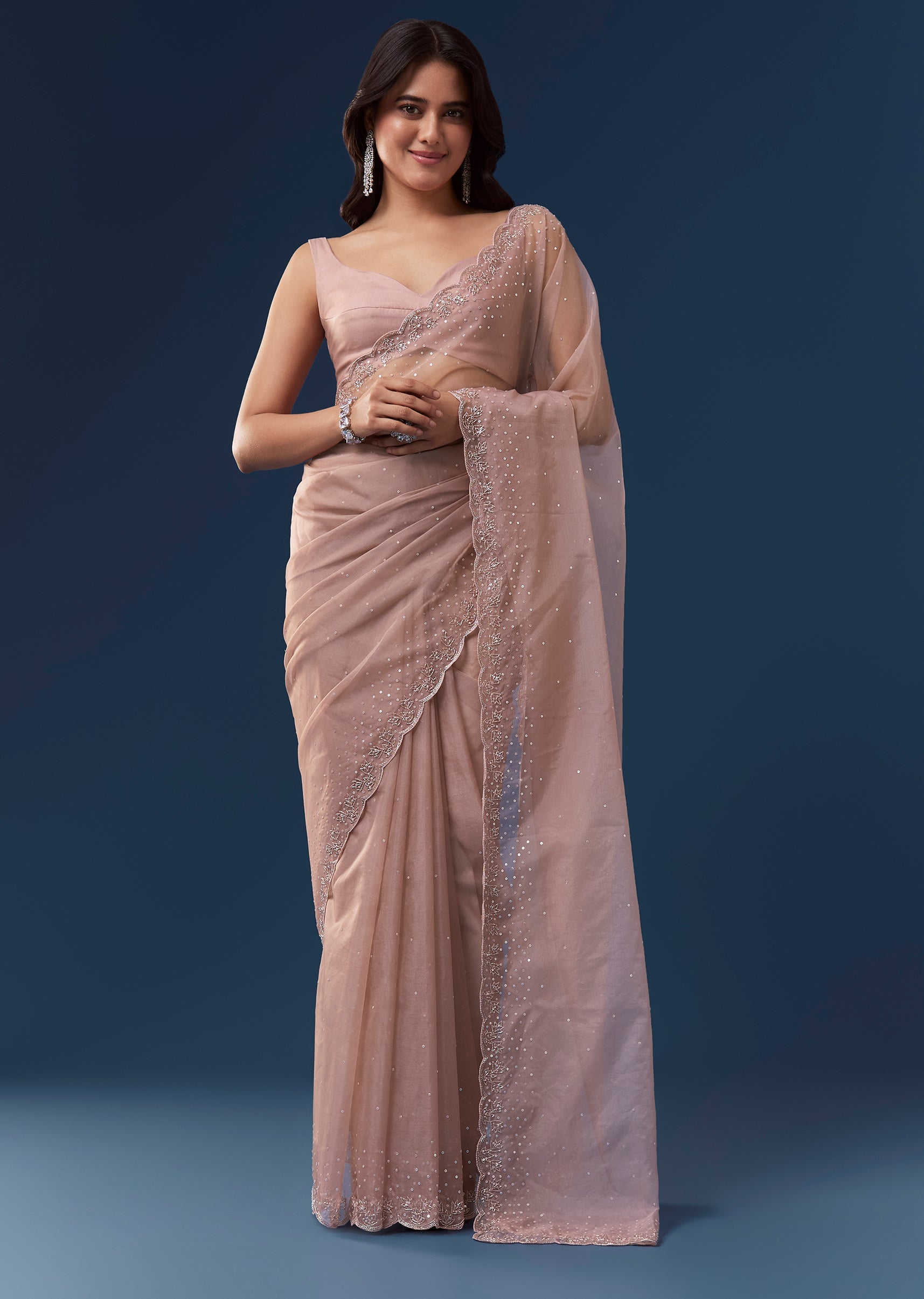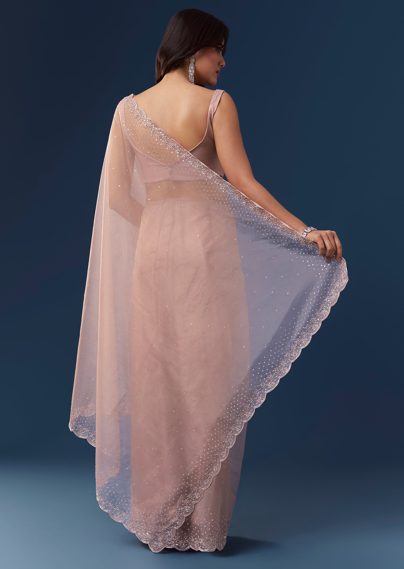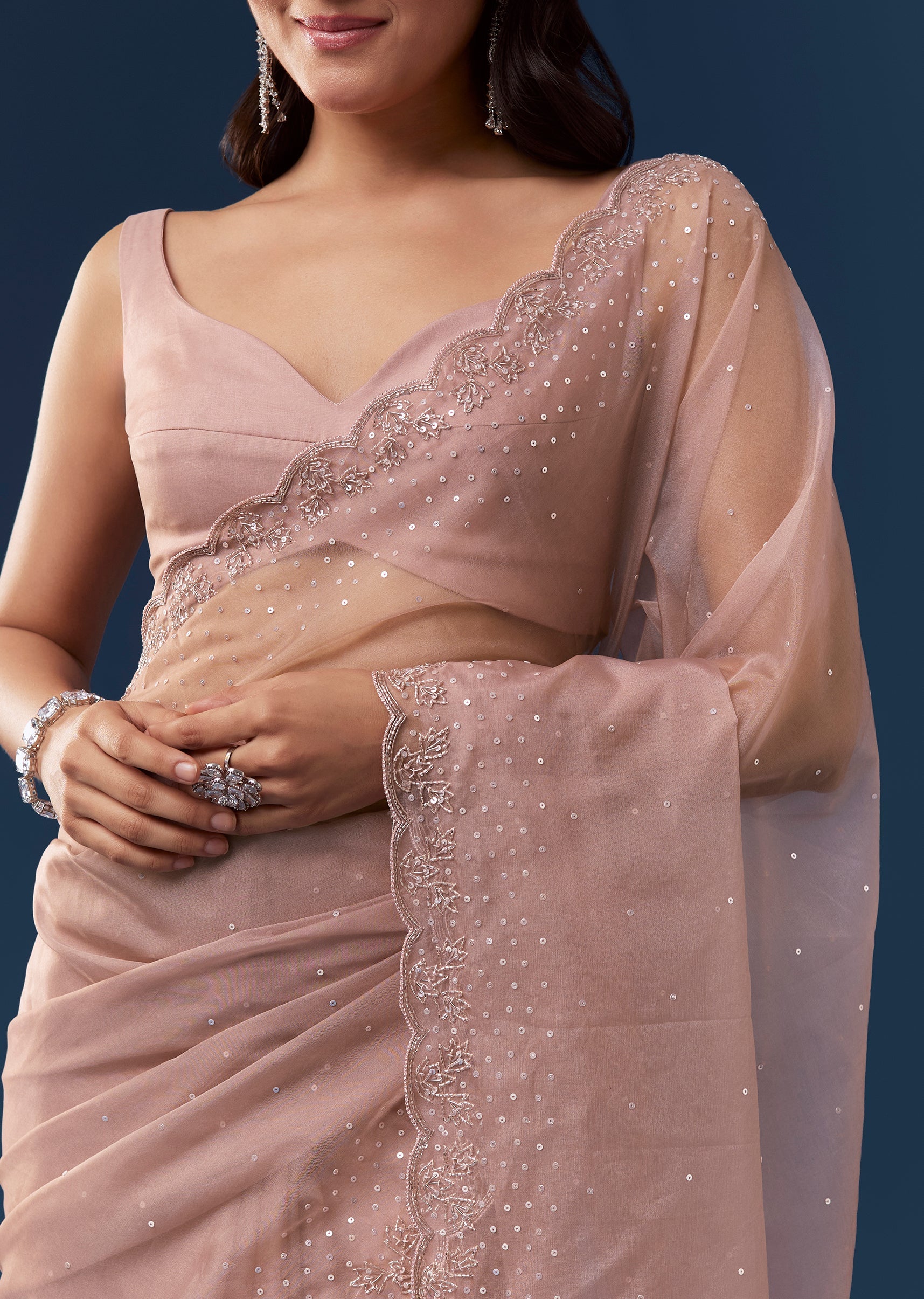 Pink Tissue Saree With Scallop Border And Cutdana Sequin Embroidery