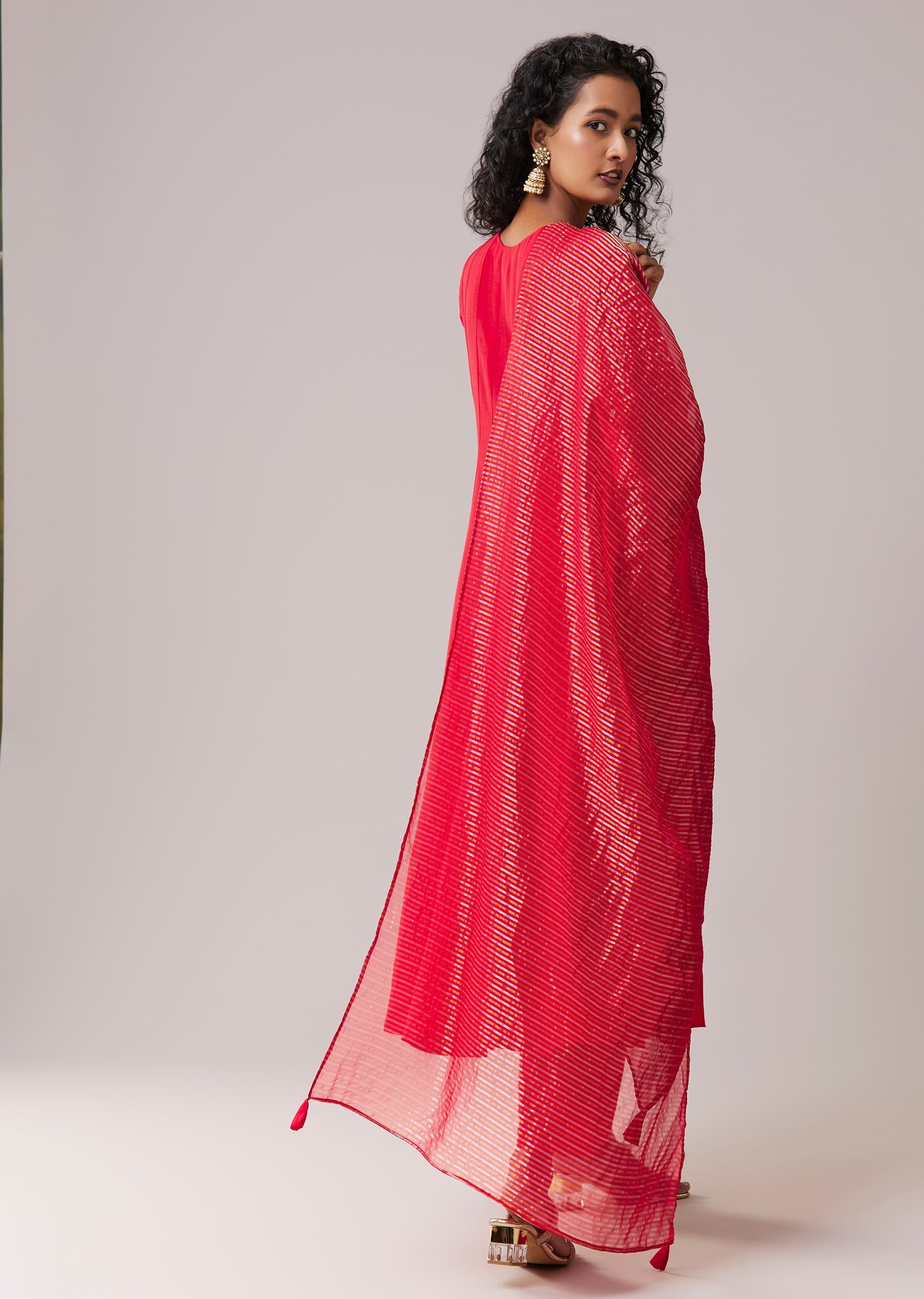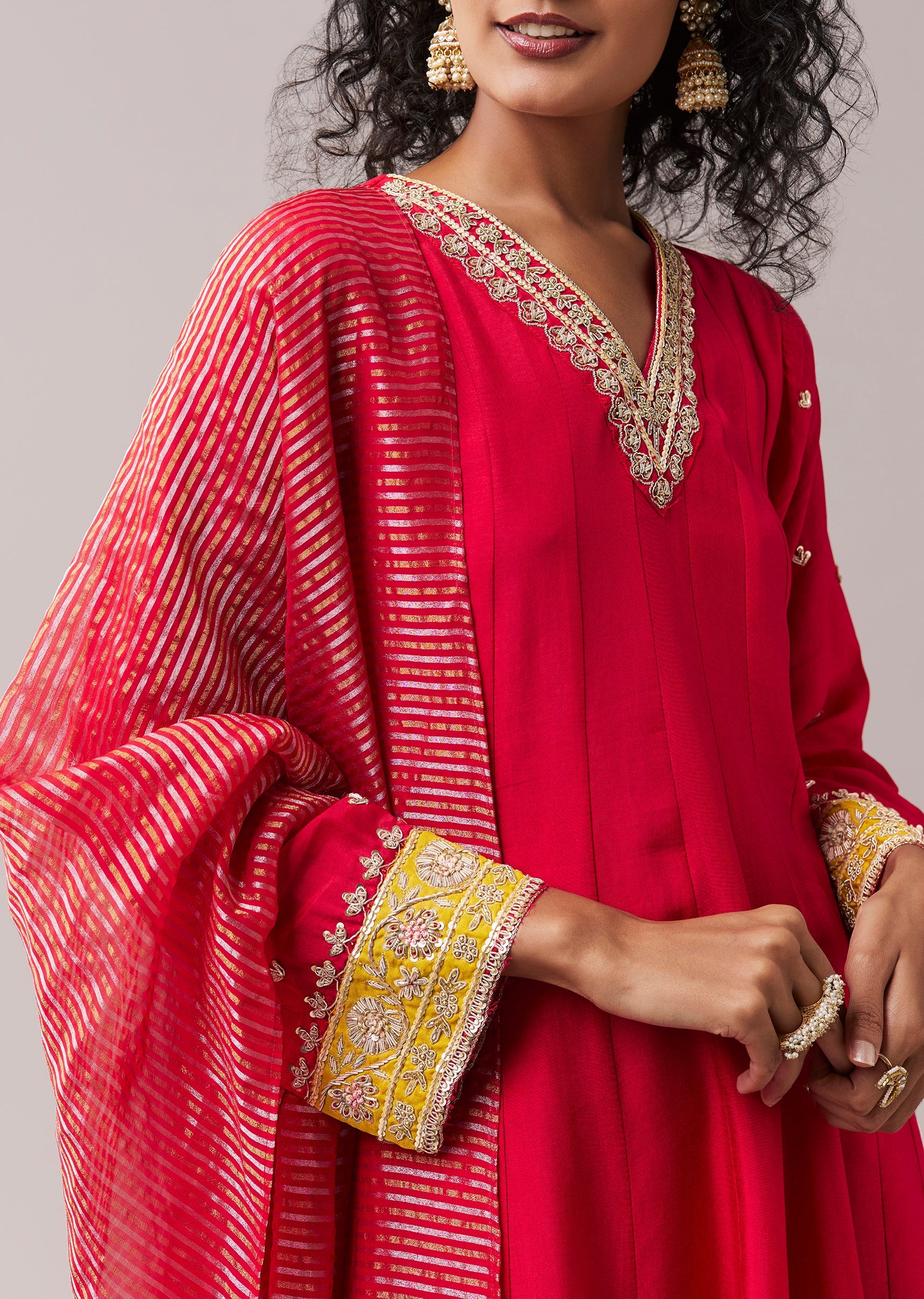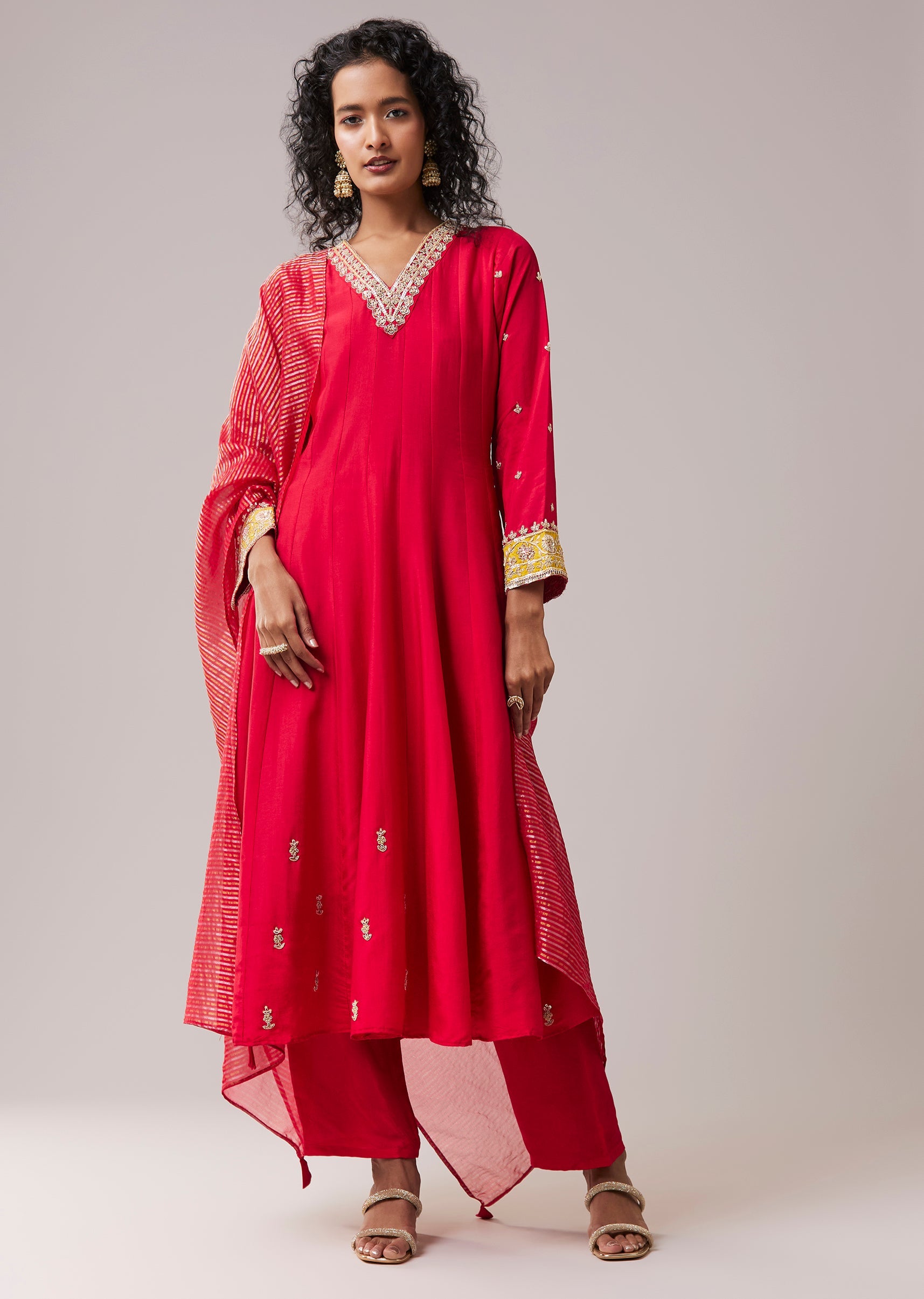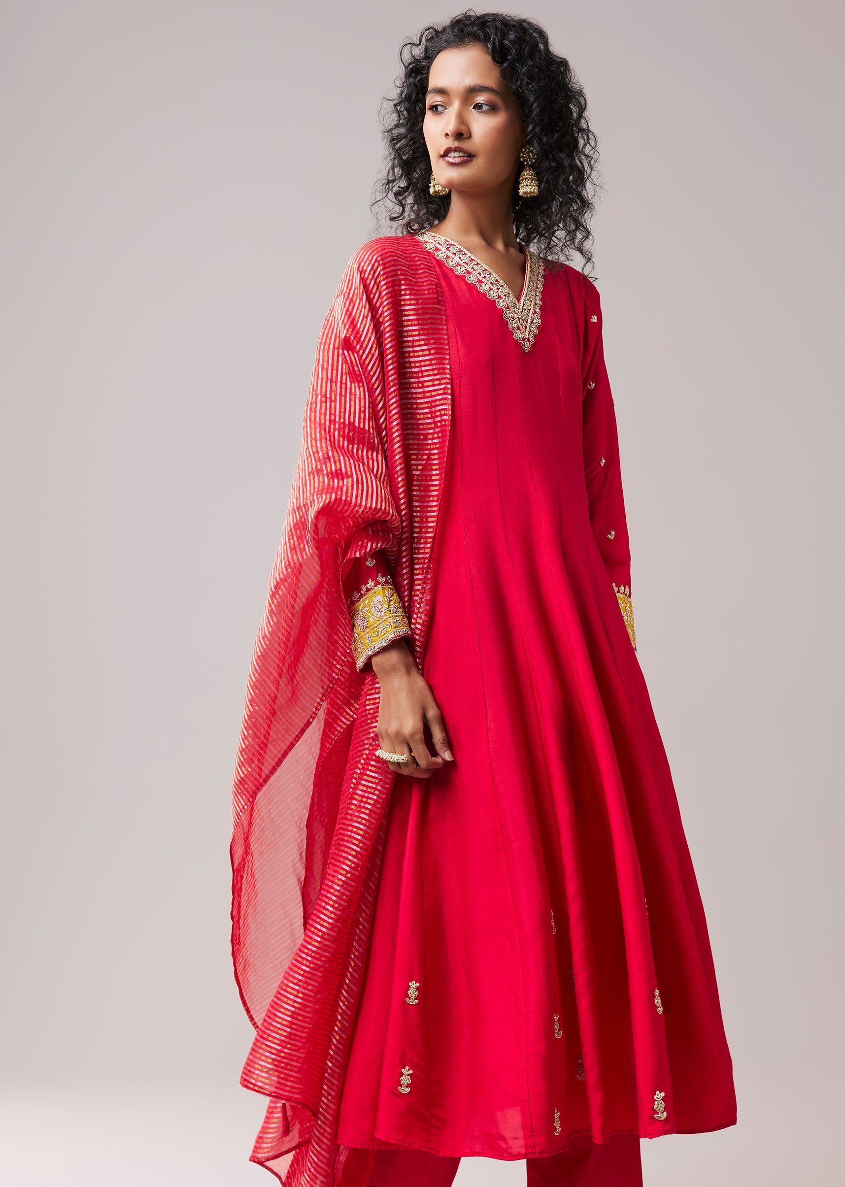 The side zip ensures a neat, secure fit at the bodice, while the flared anarkali allows comfort and ease of movement throughout wear.