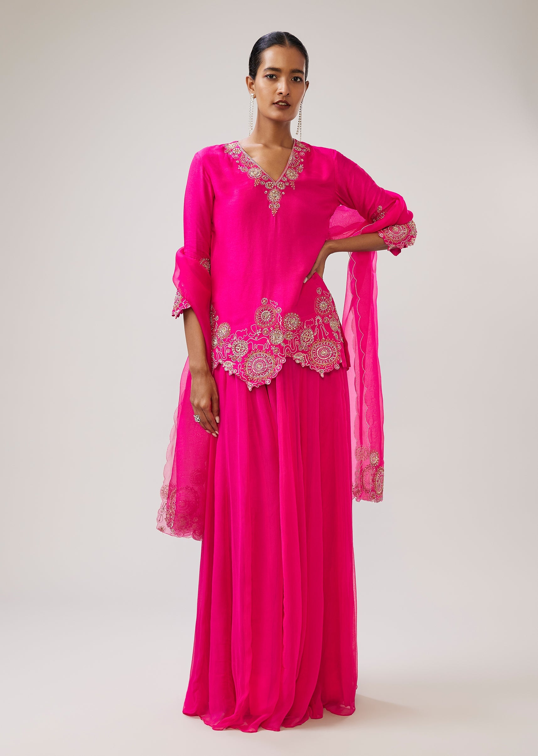 Pink Zari Sequin Resham Palazzo Suit With Dupatta