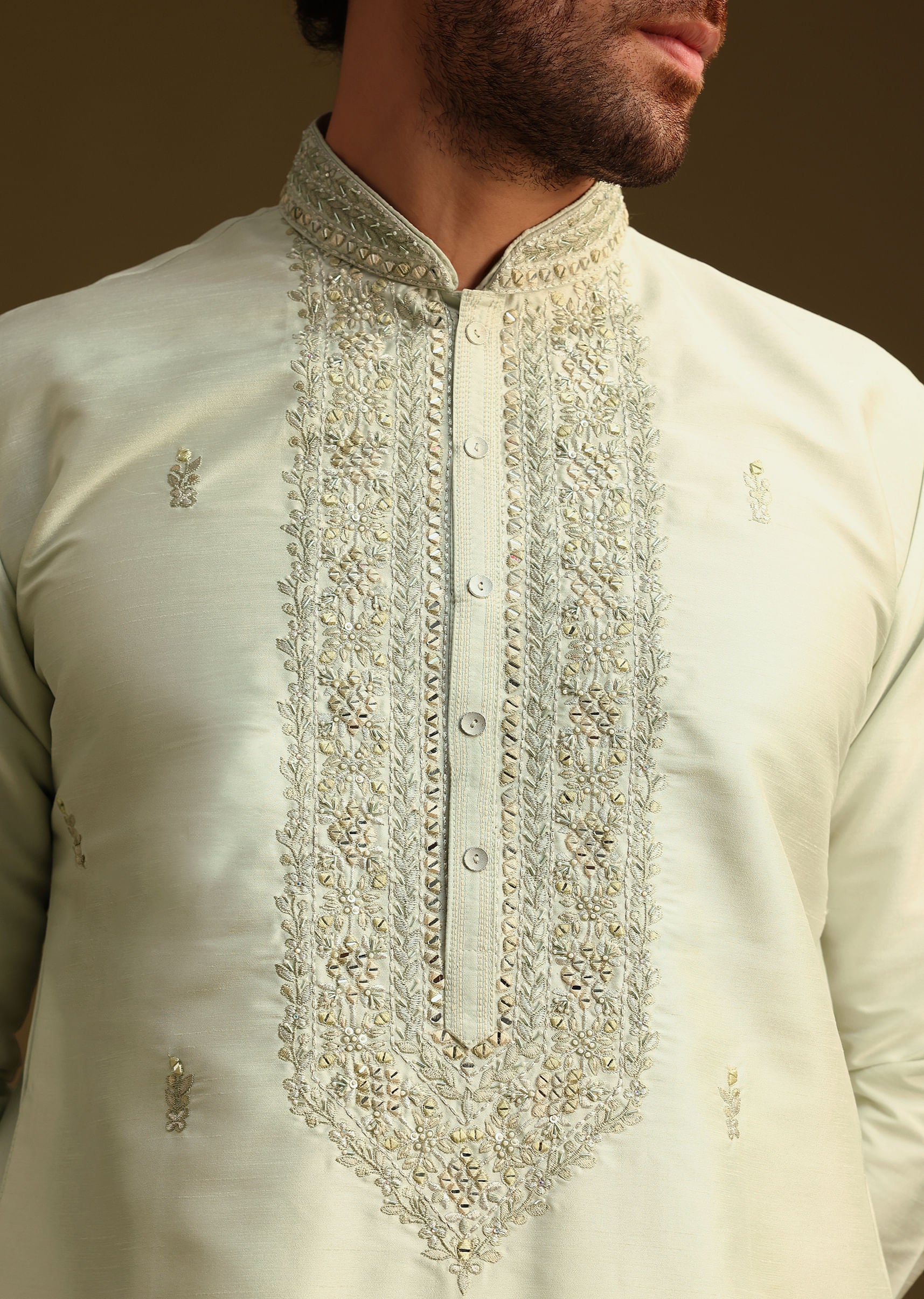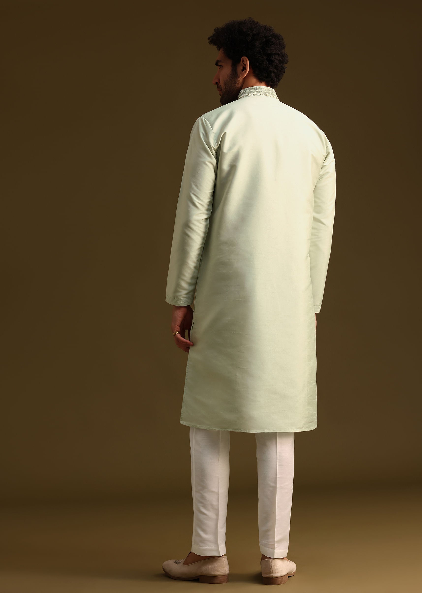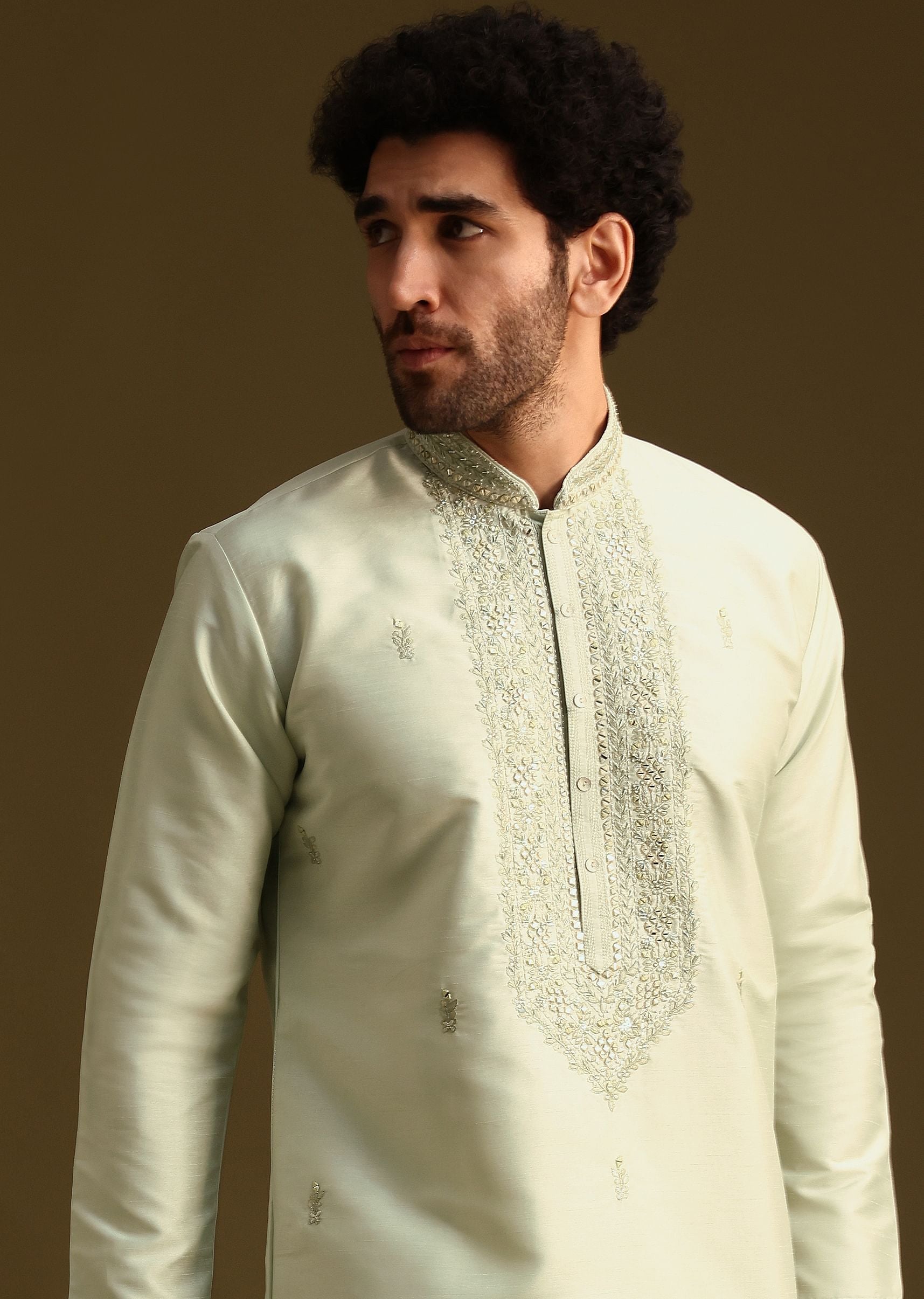 - Made with intricate threadwork and featuring a chic mandarin collar it offers a modern twist to traditional elegance.