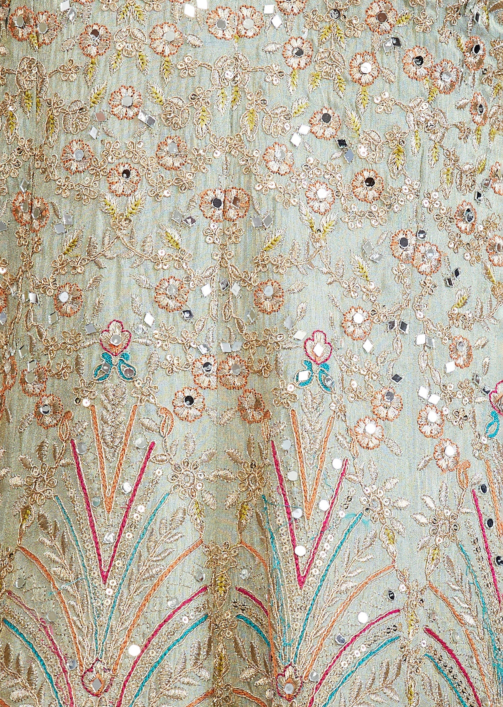 Pista Green Traditional Lehenga With Zari Mirror Sequin Detailing