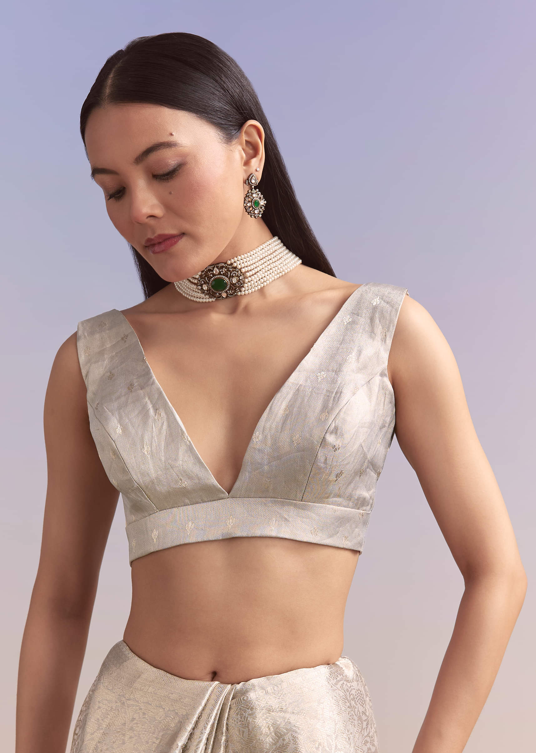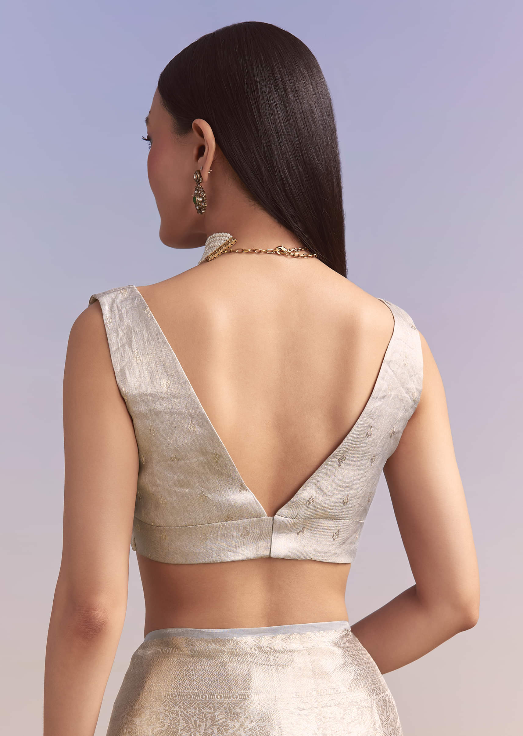 Powder Blue Chanderi Silk Woven Saree With Zari Embroidery