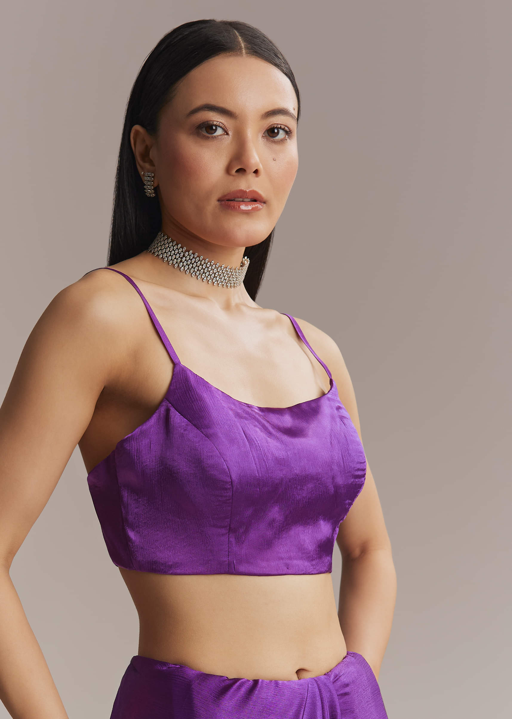 Purple Chinon Saree With Stone And Sequin Embroidery