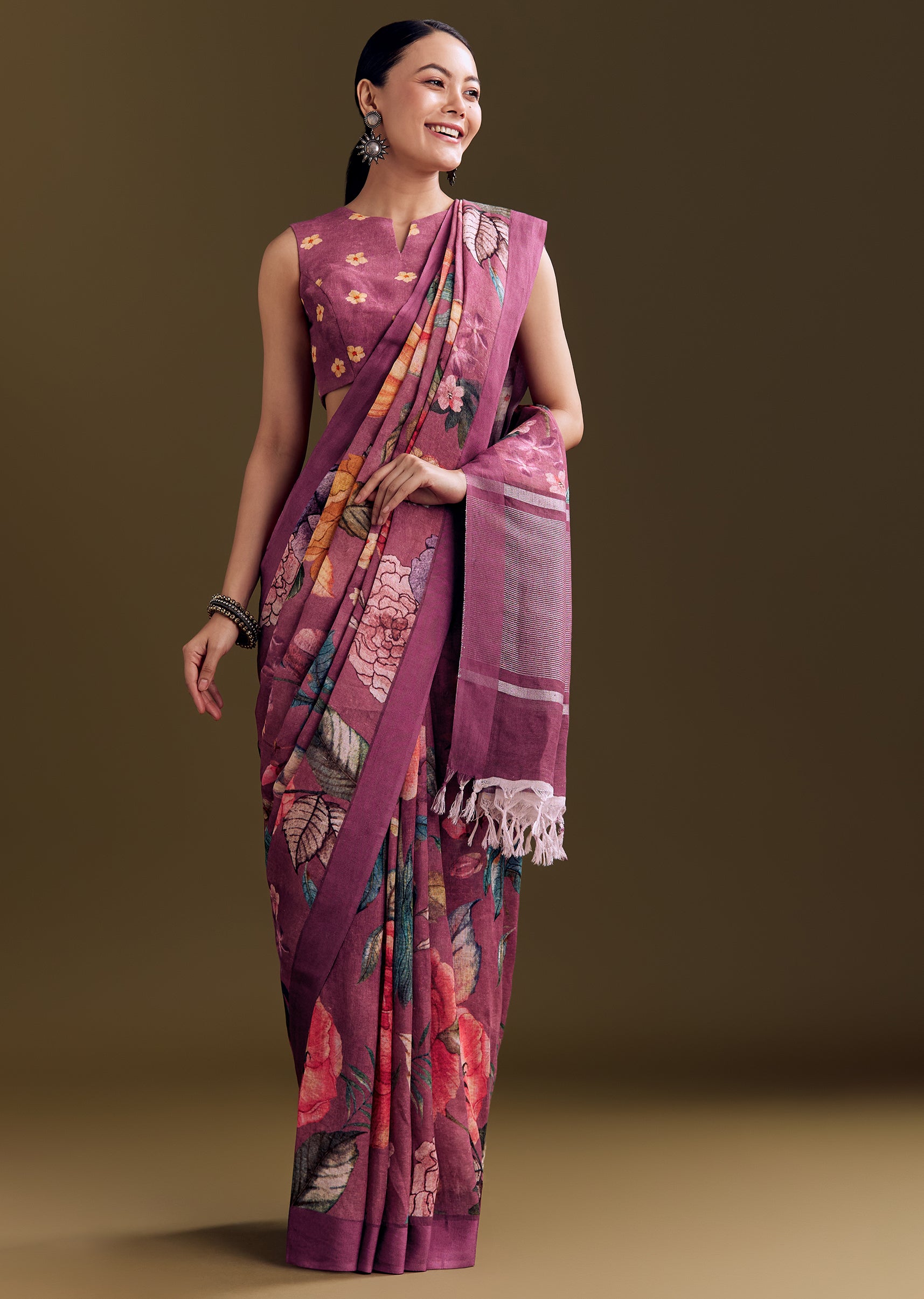This muted sand beige saree features soft floral motifs and a natural fall in breathable cotton linen. Awarded as the Most Trusted Brand, we're delivering styles you love, just as promised.