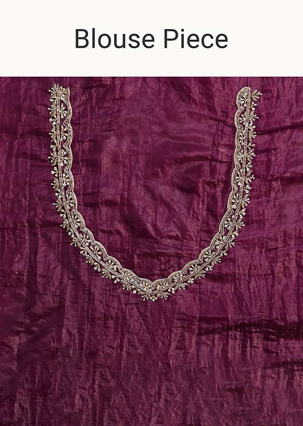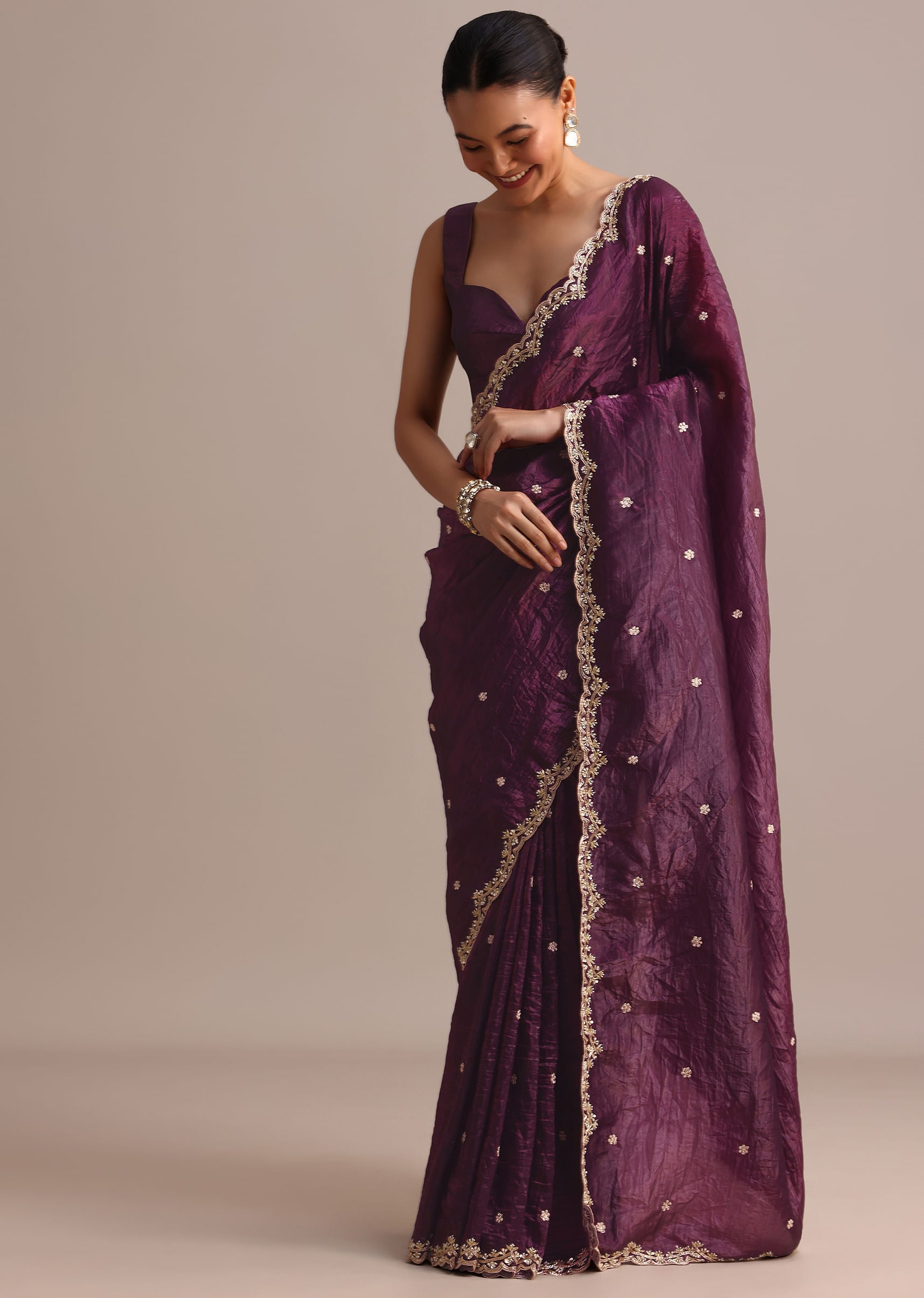Purple Crushed Tissue Saree With Sequin And Cutdana Embroidered Border