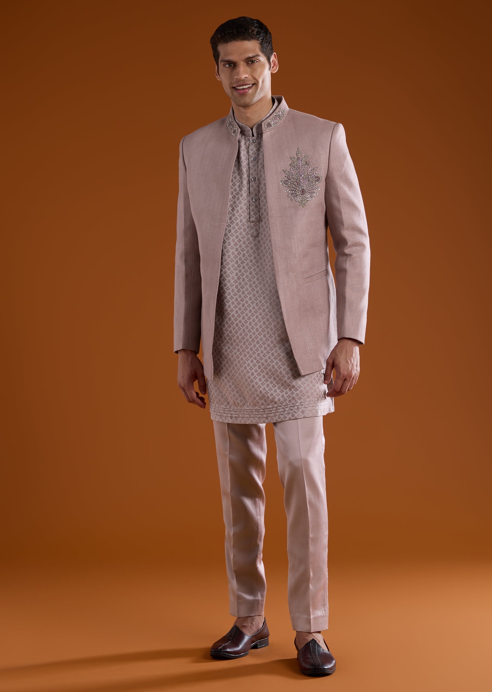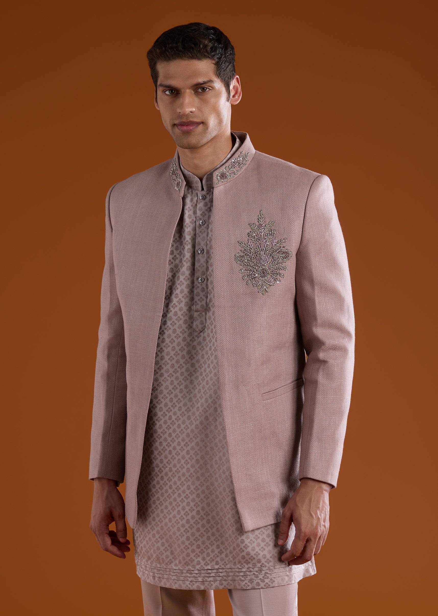 Rooted in heritage with a festive flourish, this matka silk jodhpuri kurta set is crafted for elevated traditional dressing. The textured matka silk base is richly adorned with thread and... More Product Details