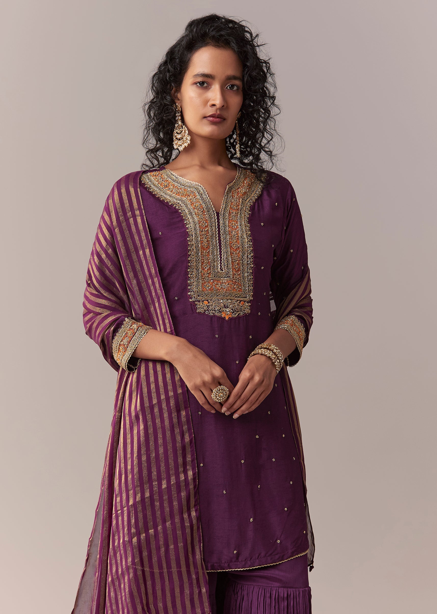 Purple Pakistani-Style Zardosi Sharara Set With Dupatta
