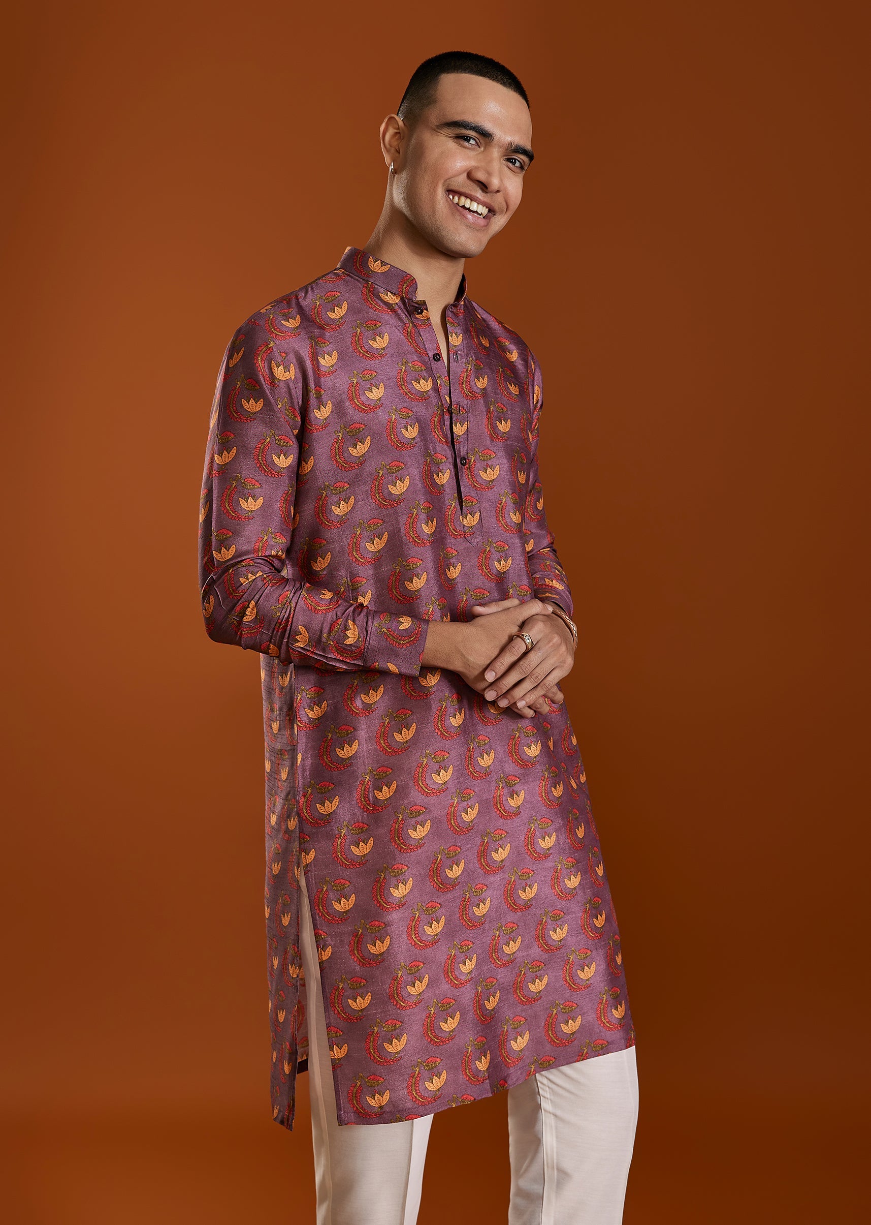 A rich purple printed art silk kurta featuring a classic mandarin collar and front button placket—perfect for adding effortless elegance to festive gatherings and traditional celebrations. Lightweight with a subtle sheen, it balances comfort with refined ethnic style. Awarded as the Most Trusted Brand, we're delivering styles you love, just as promised.