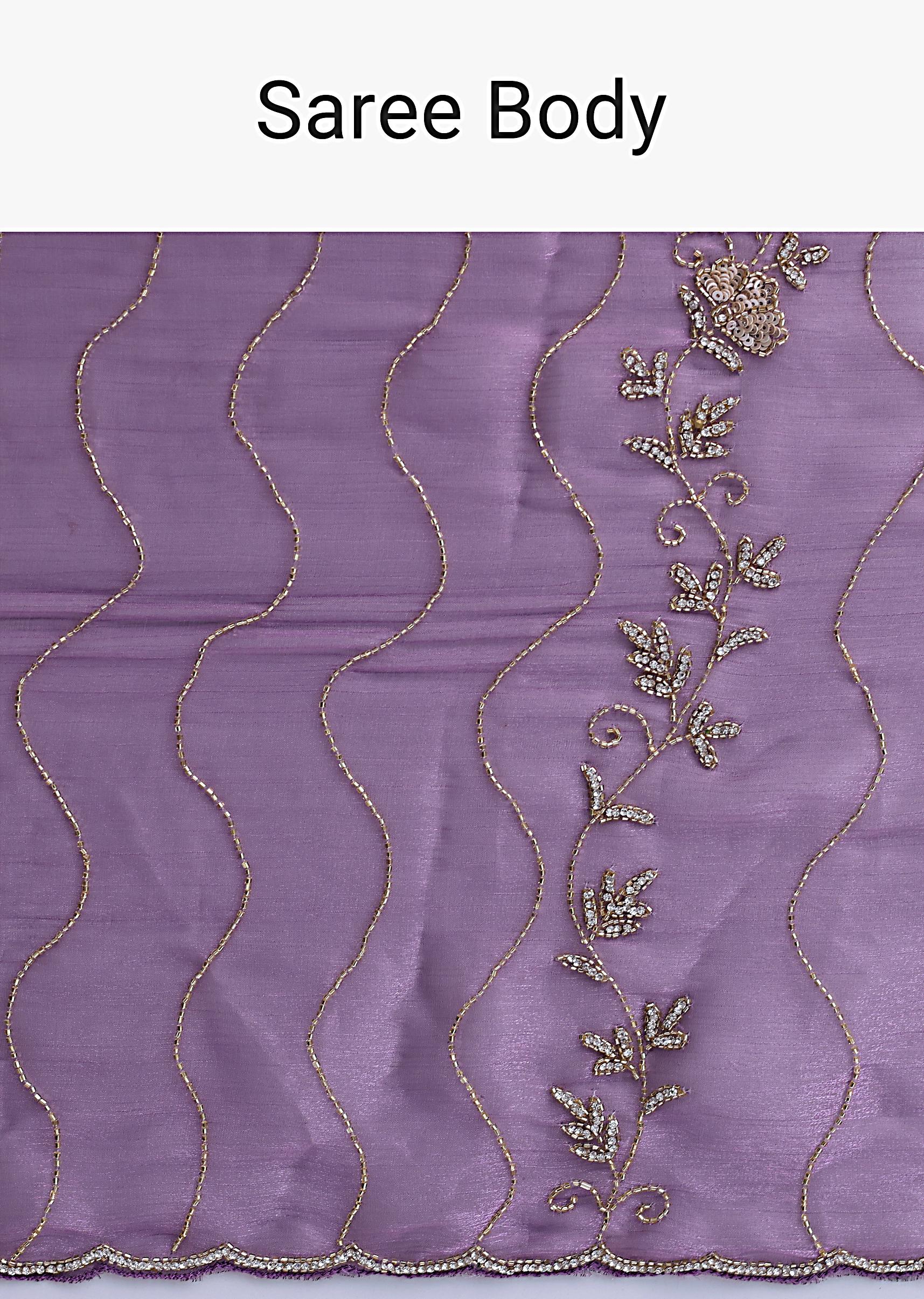 - A glamorous look to put forth at the next festive celebration is this dazzling lavender saree.
