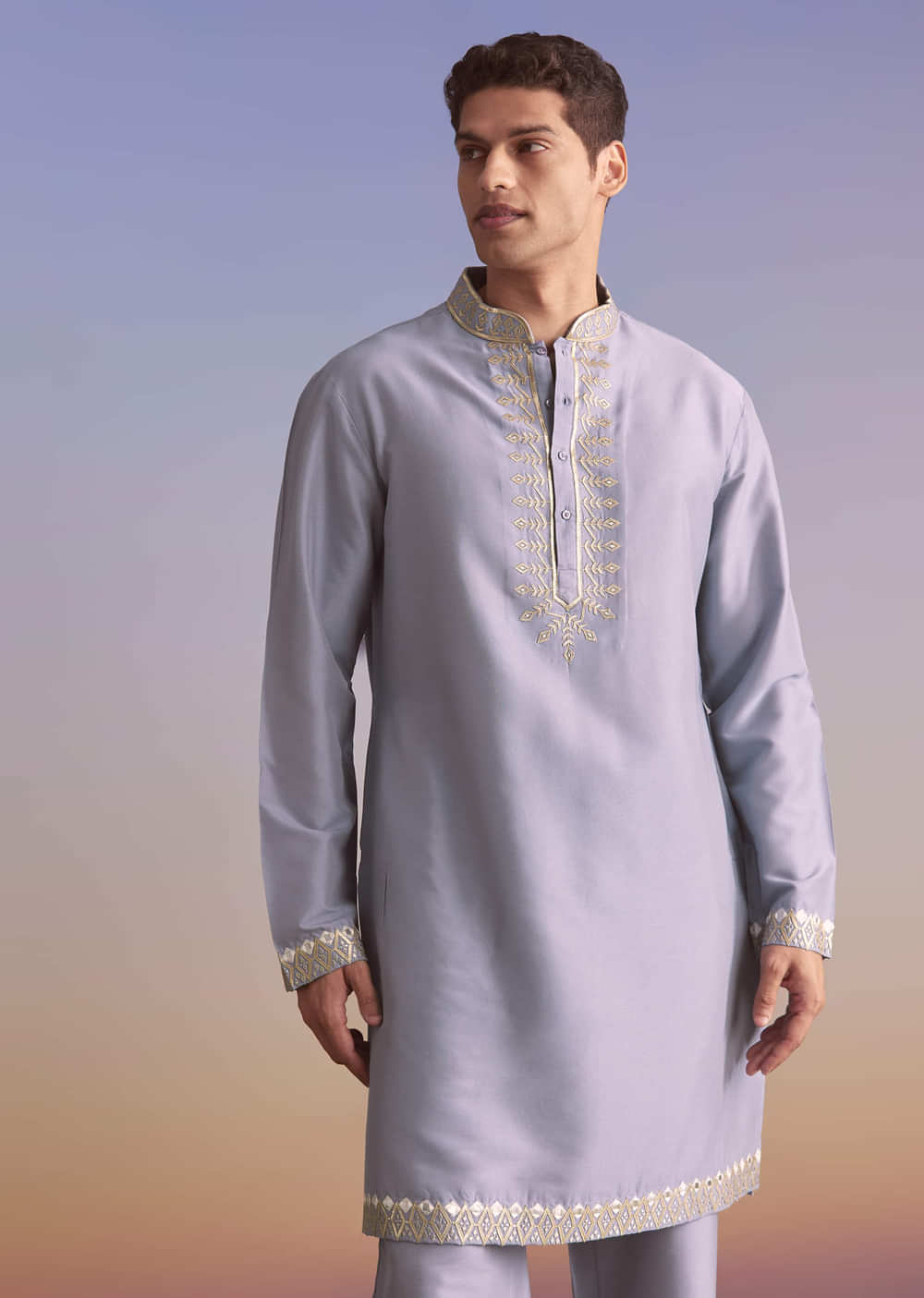 Fit Tips:Expect a structured shoulder on the jacket with gentle waist shaping, and a straight, breathable kurta that layers easily.