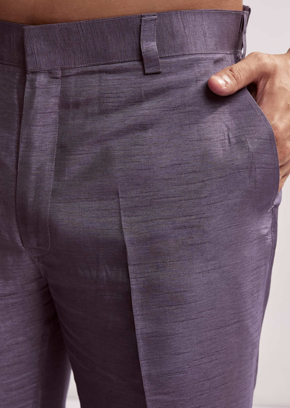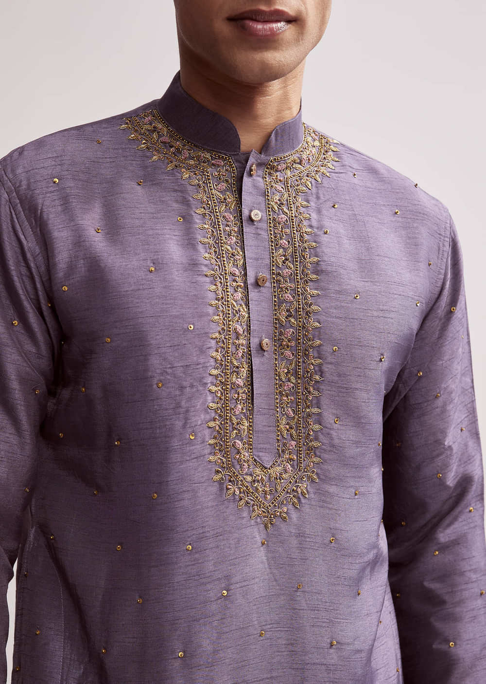 Purple Silk Kurta Set For Men With Hand Embroidery