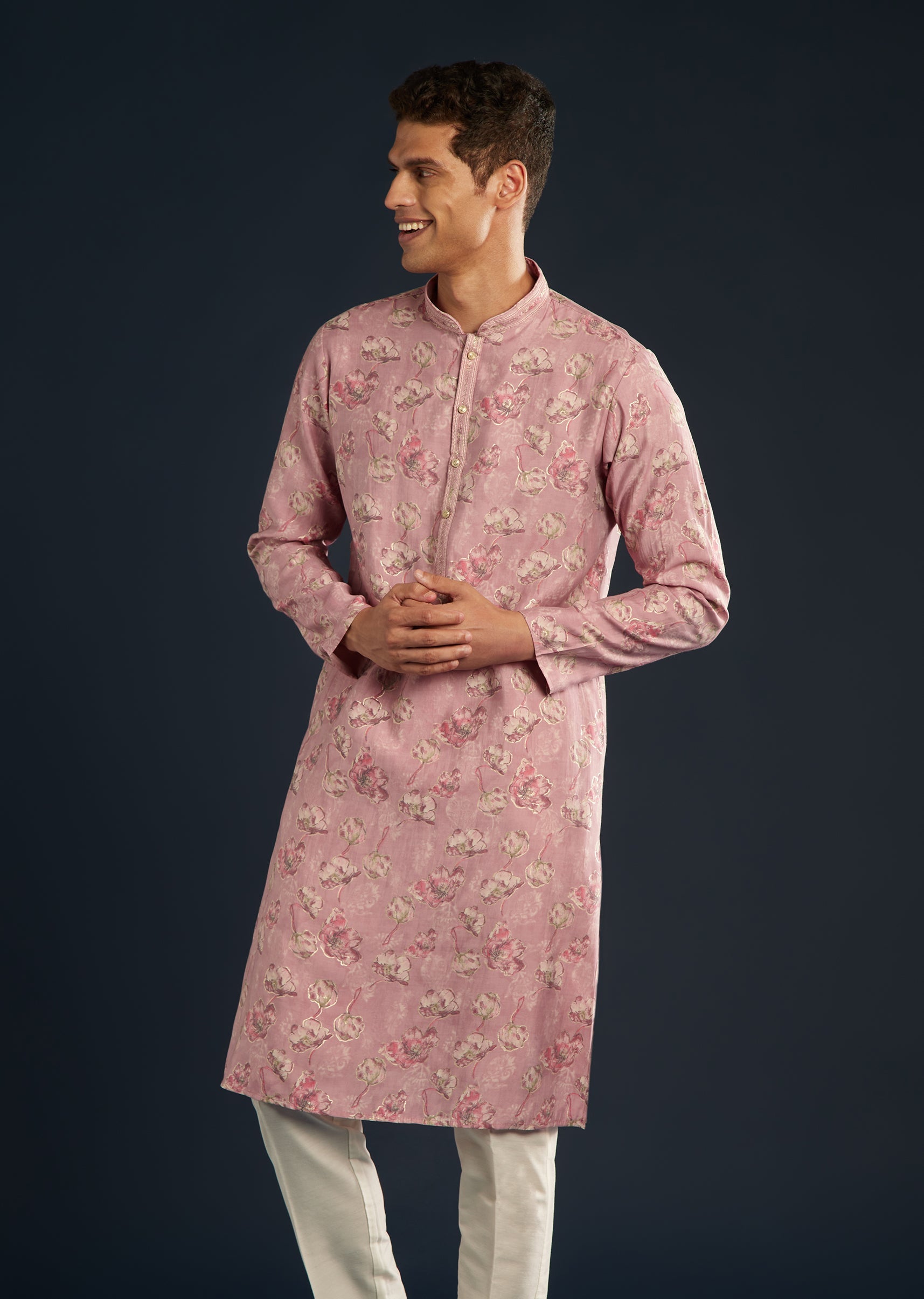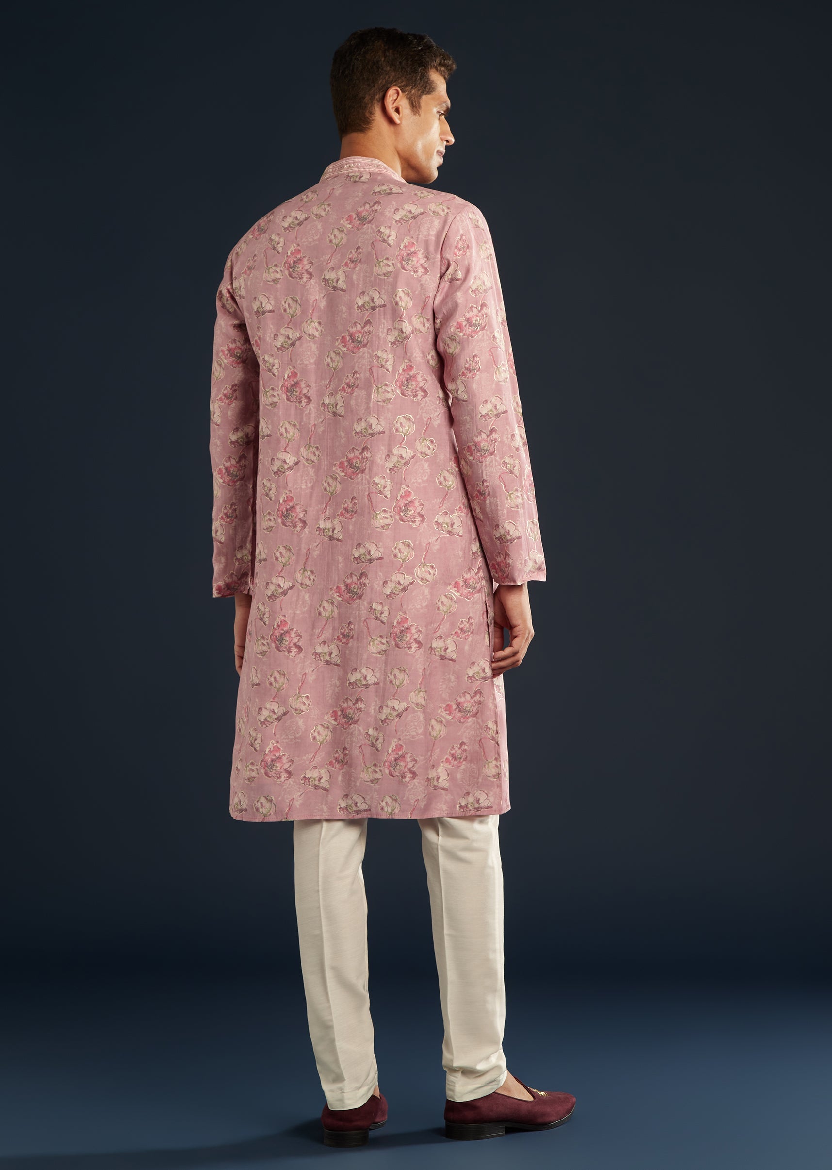Drawing inspiration from India’s rich artisanal heritage, this vibrant purple kurta set blends tradition with modern poise. The delicate jaal of floral motifs shimmers subtly, creating texture and visual charm. Tailored with a mandarin neckline, full sleeves, and classic trousers, it brings effortless polish to every festive gathering. Awarded as the Most Trusted Brand, we're delivering styles you love, just as promised.
