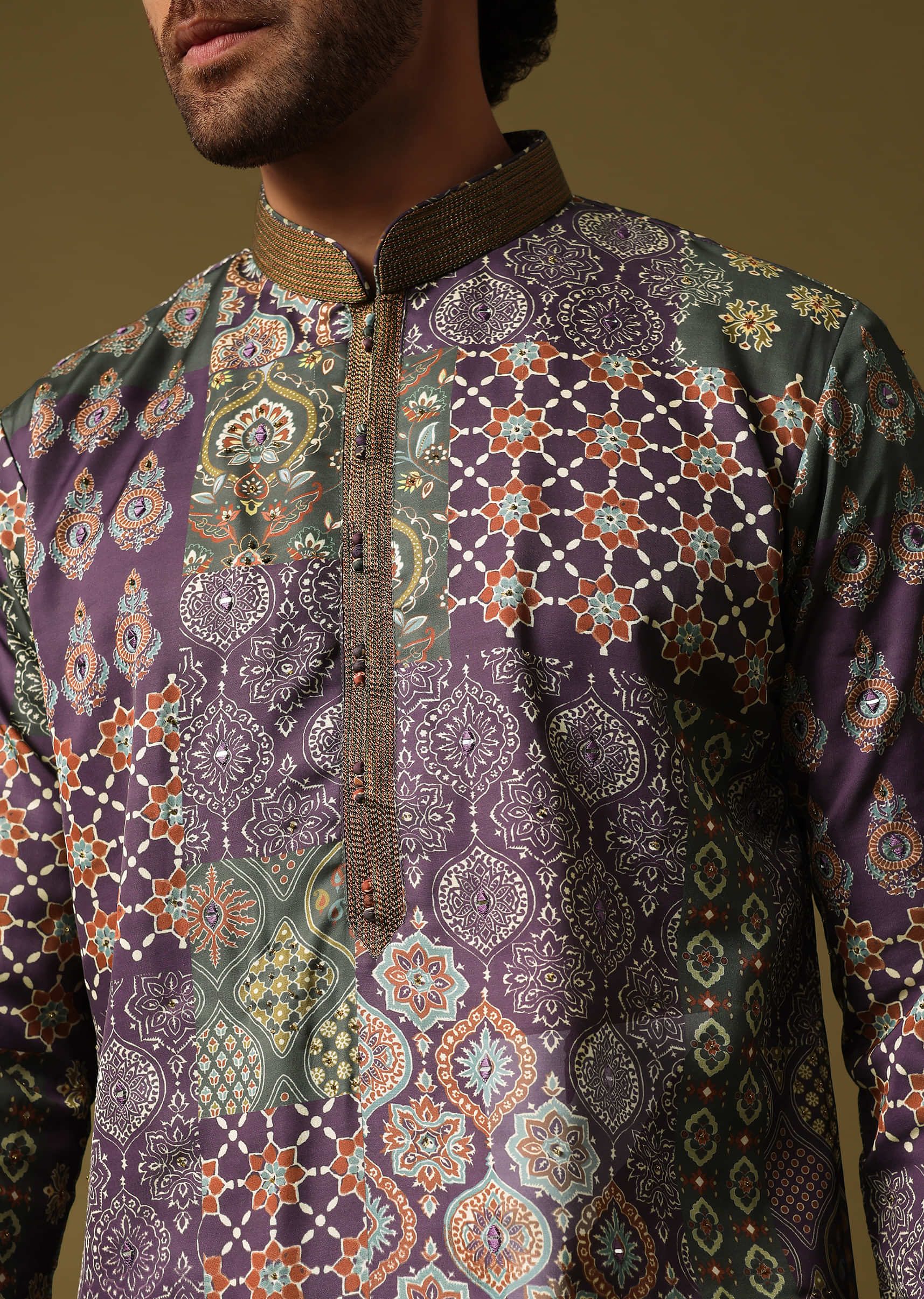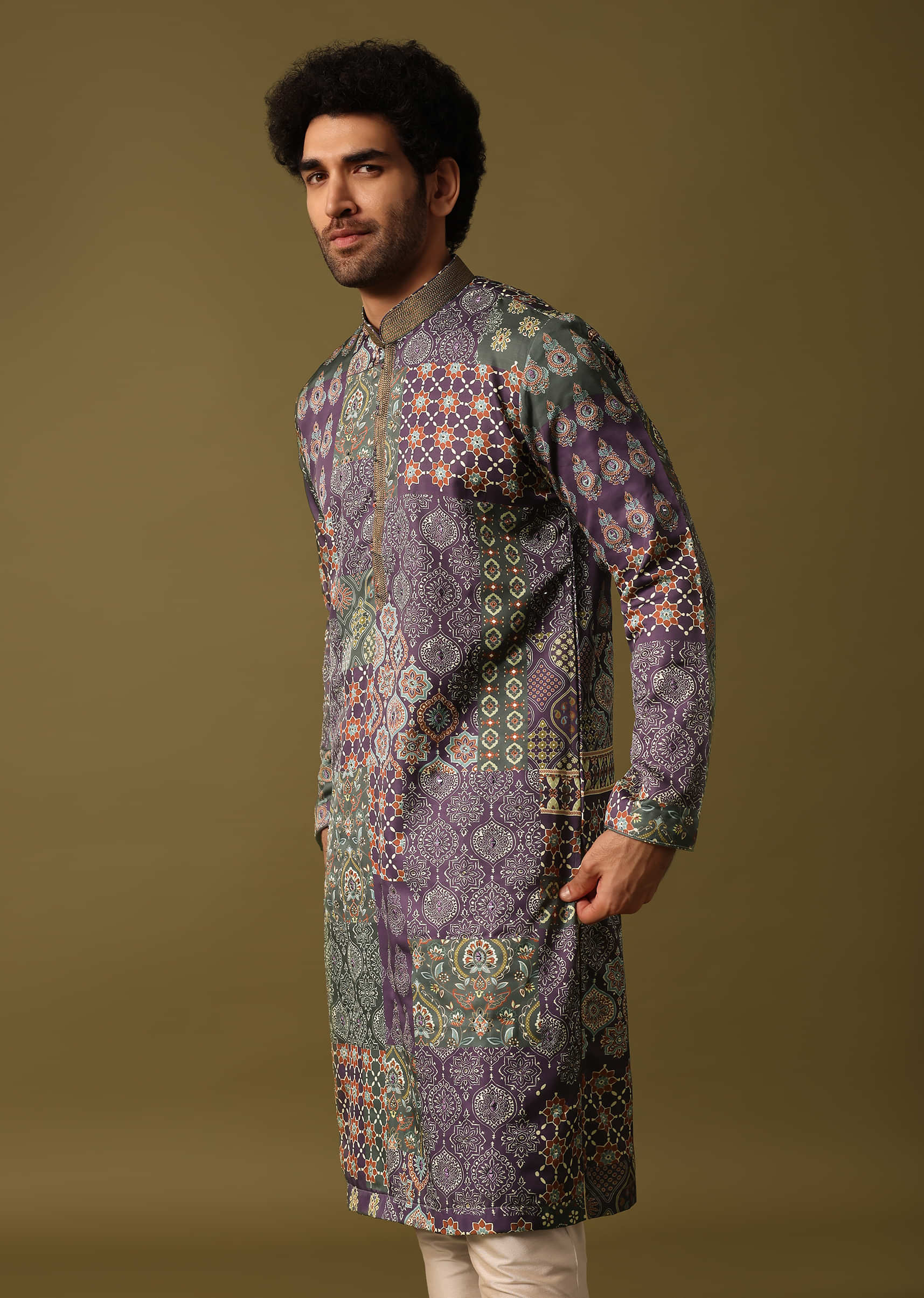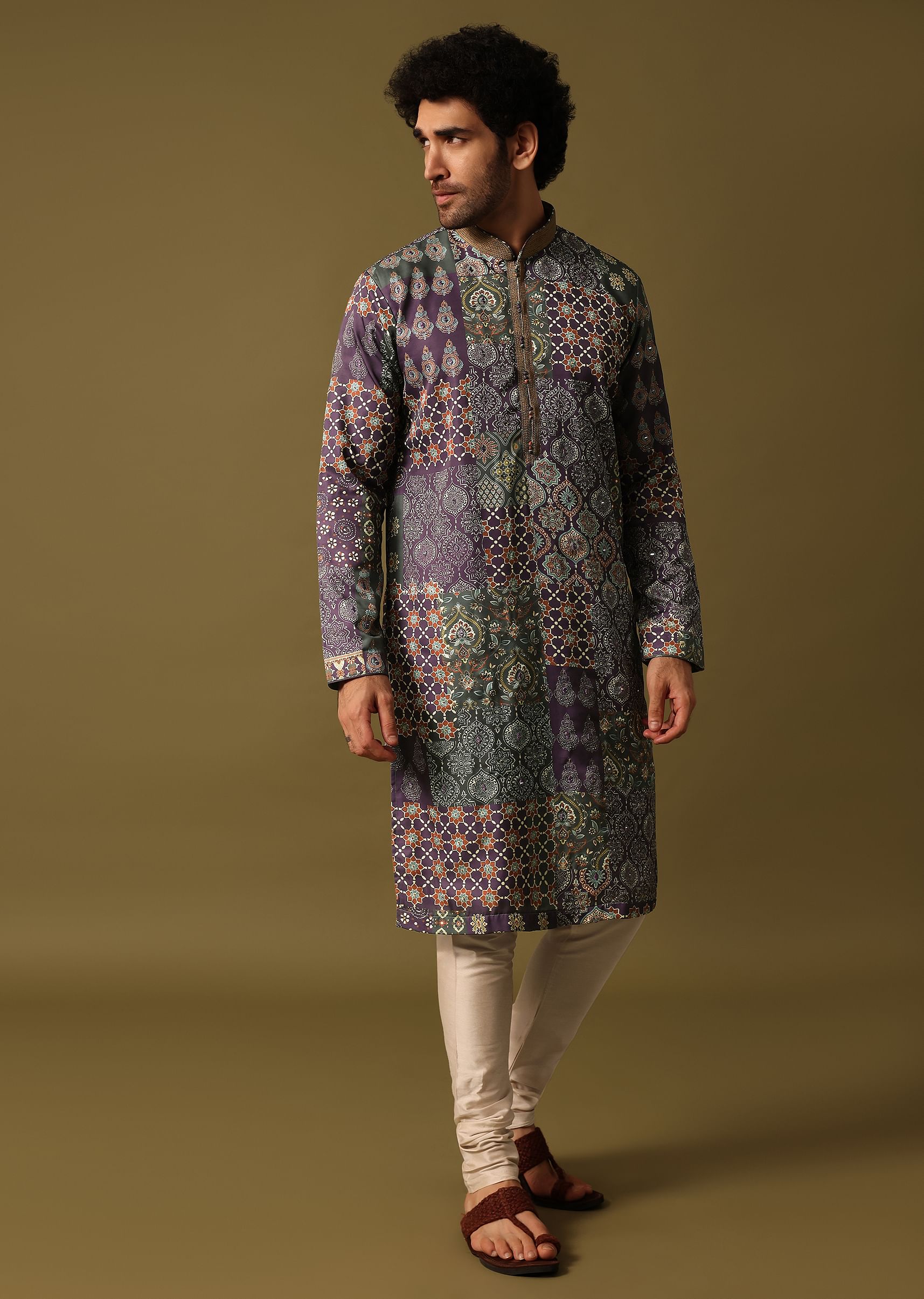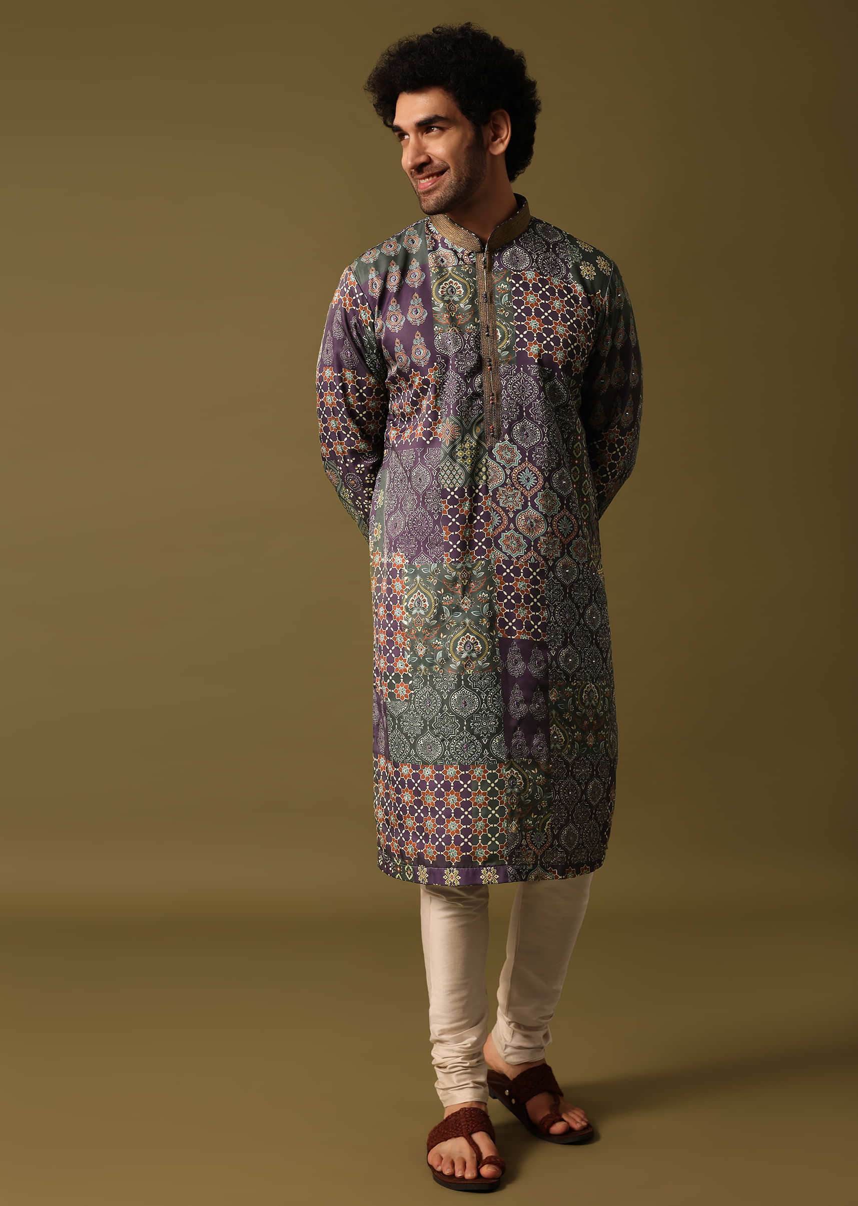 - Crafted from rich silk this ensemble features stunning prints and intricate bead embroidery.