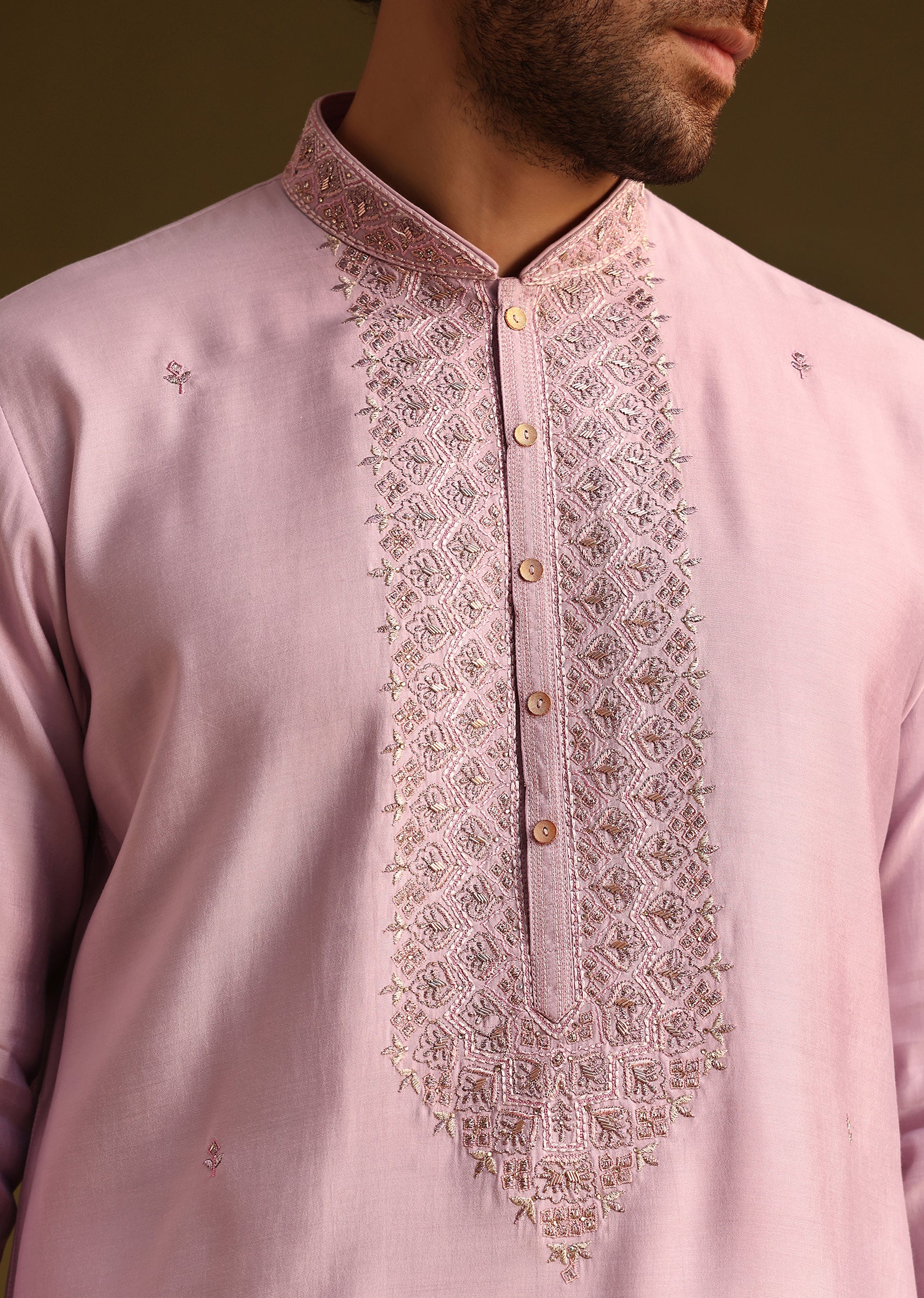 Purple Threadwork Kurta Pant Set With Embroidered Yoke