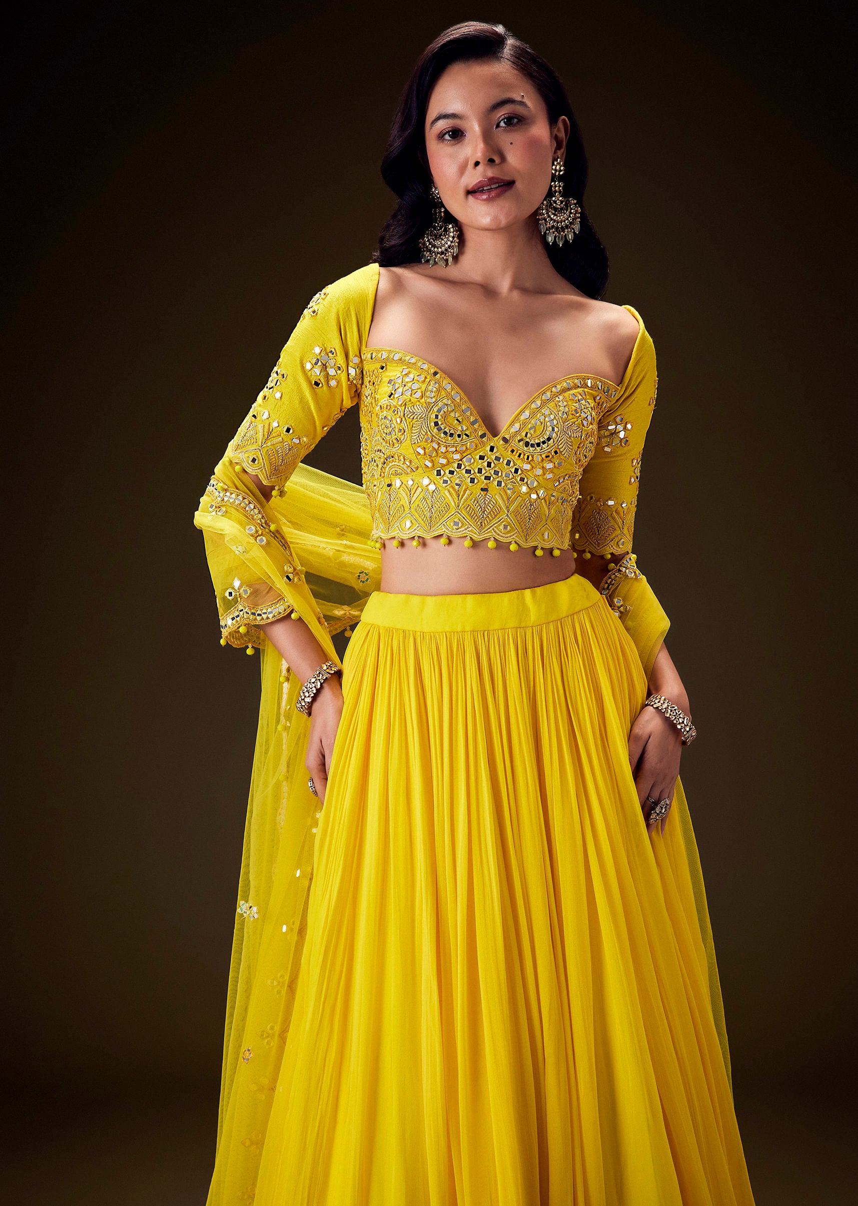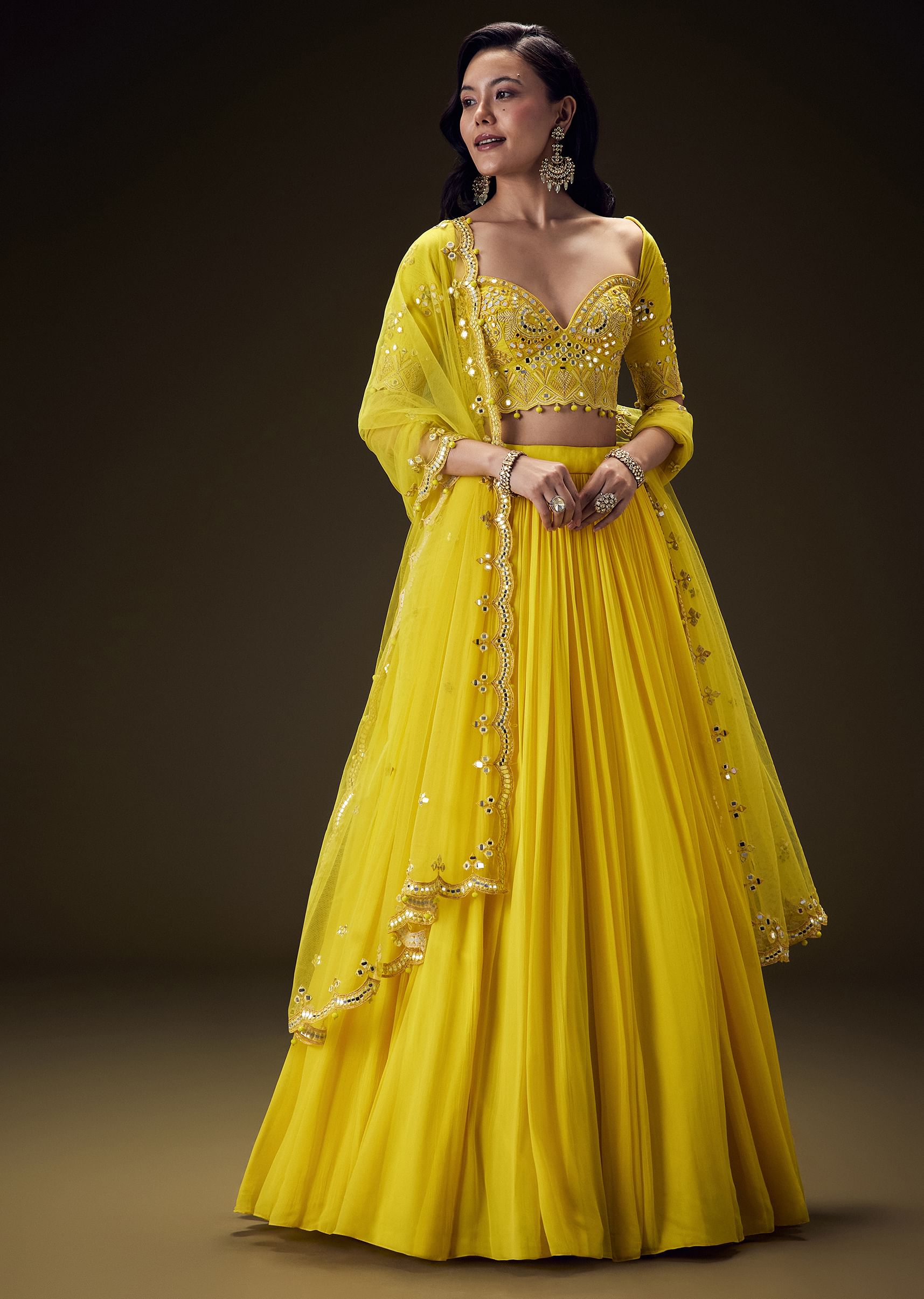Radiant Yellow Georgette Lehenga With Mirror Work Blouse And Dupatta