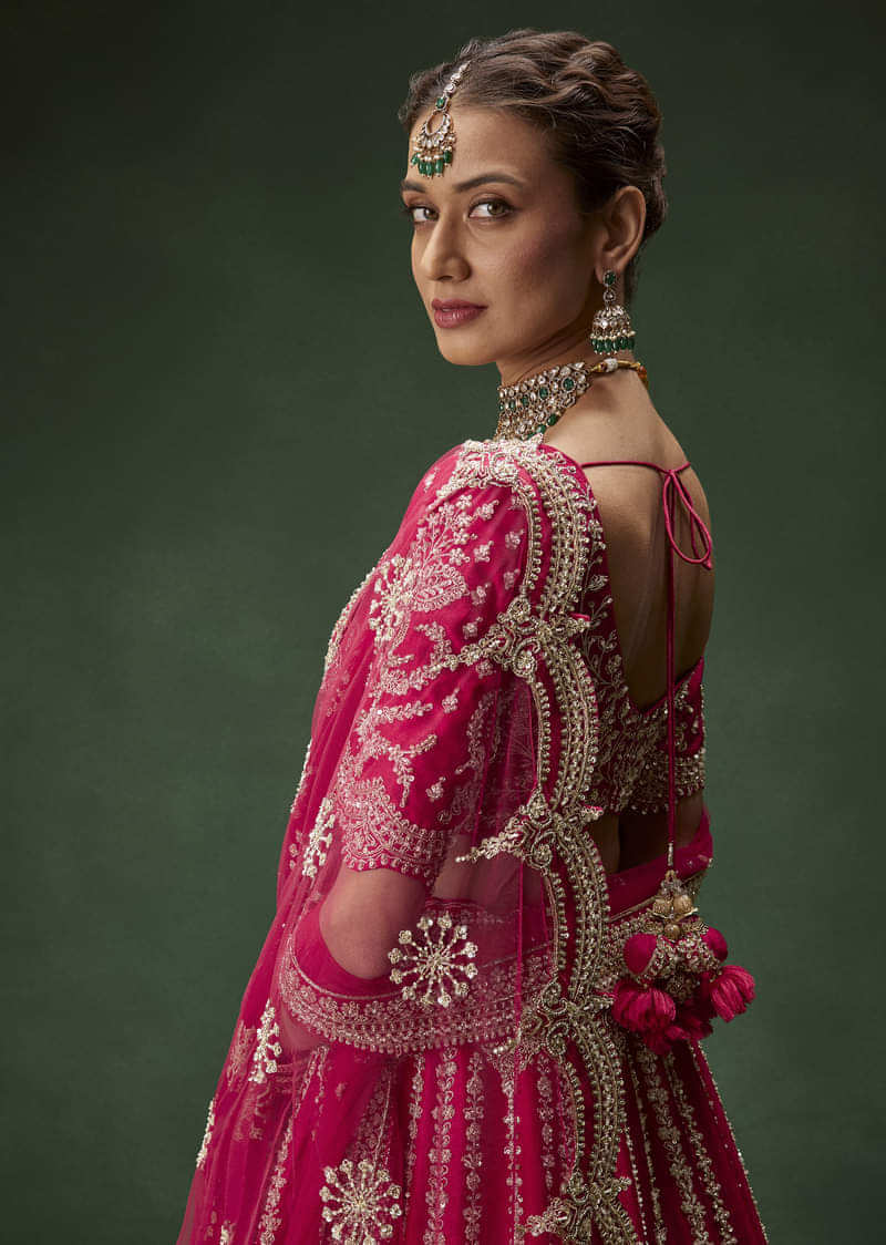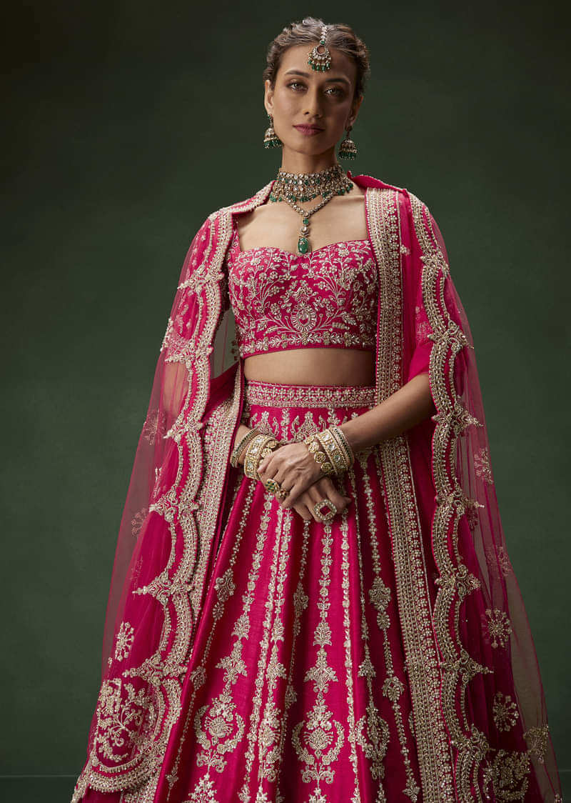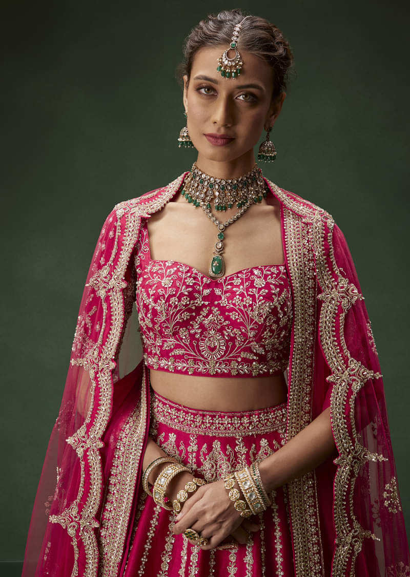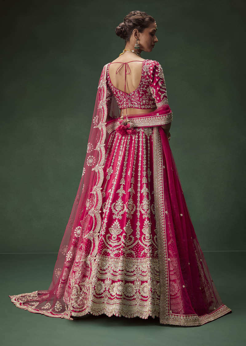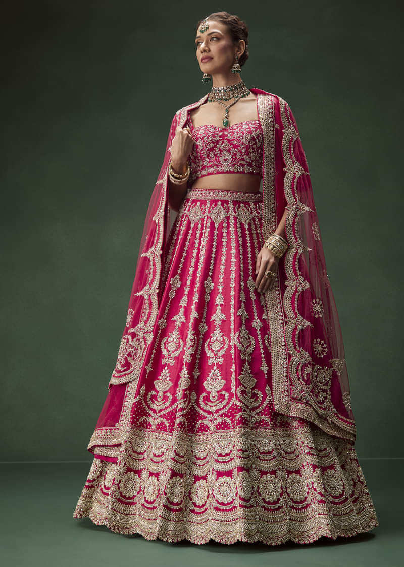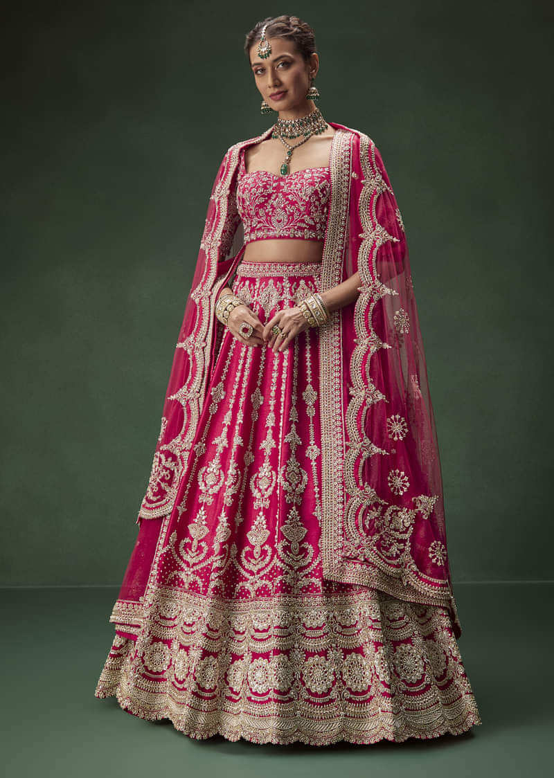Rani Pink Bridal Lehenga With Embroidered Blouse And Heavily Worked Dupattas