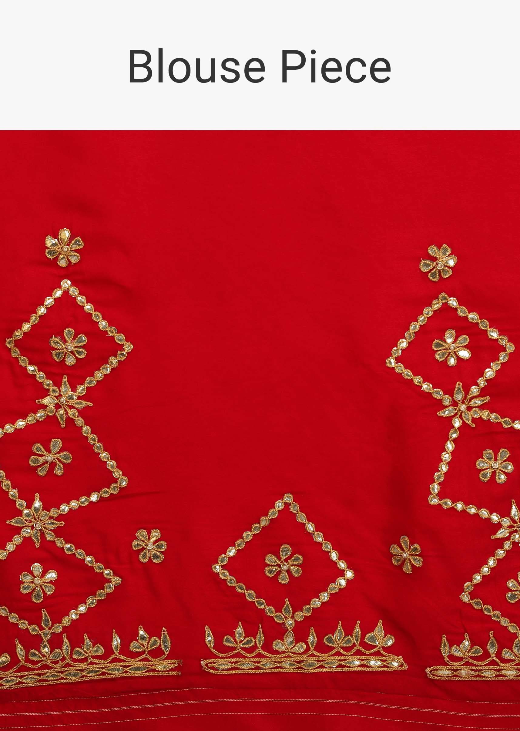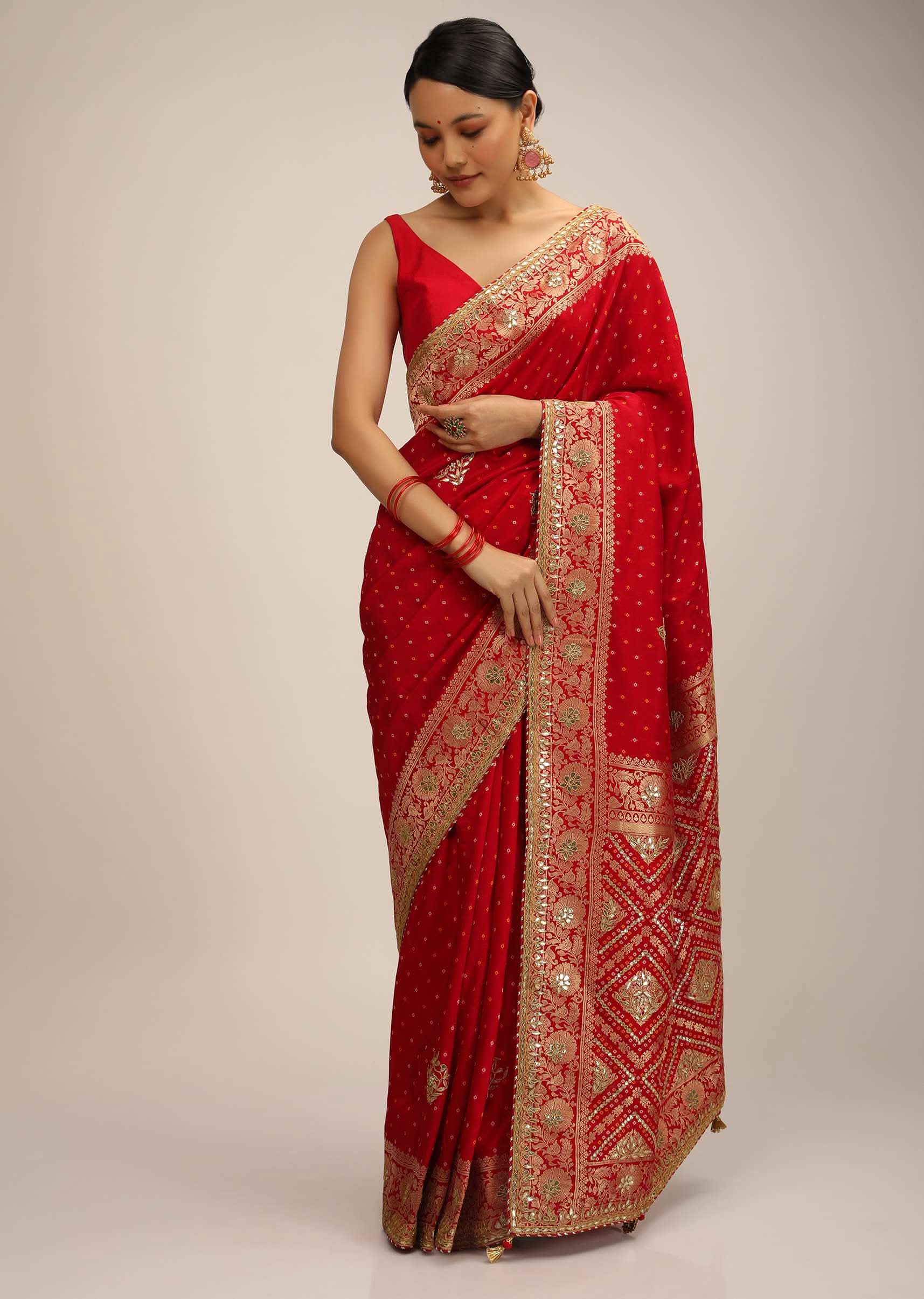 Red Saree In Silk With Brocade Geometric And Floral Design On The Pallu And Gotta Embroidery