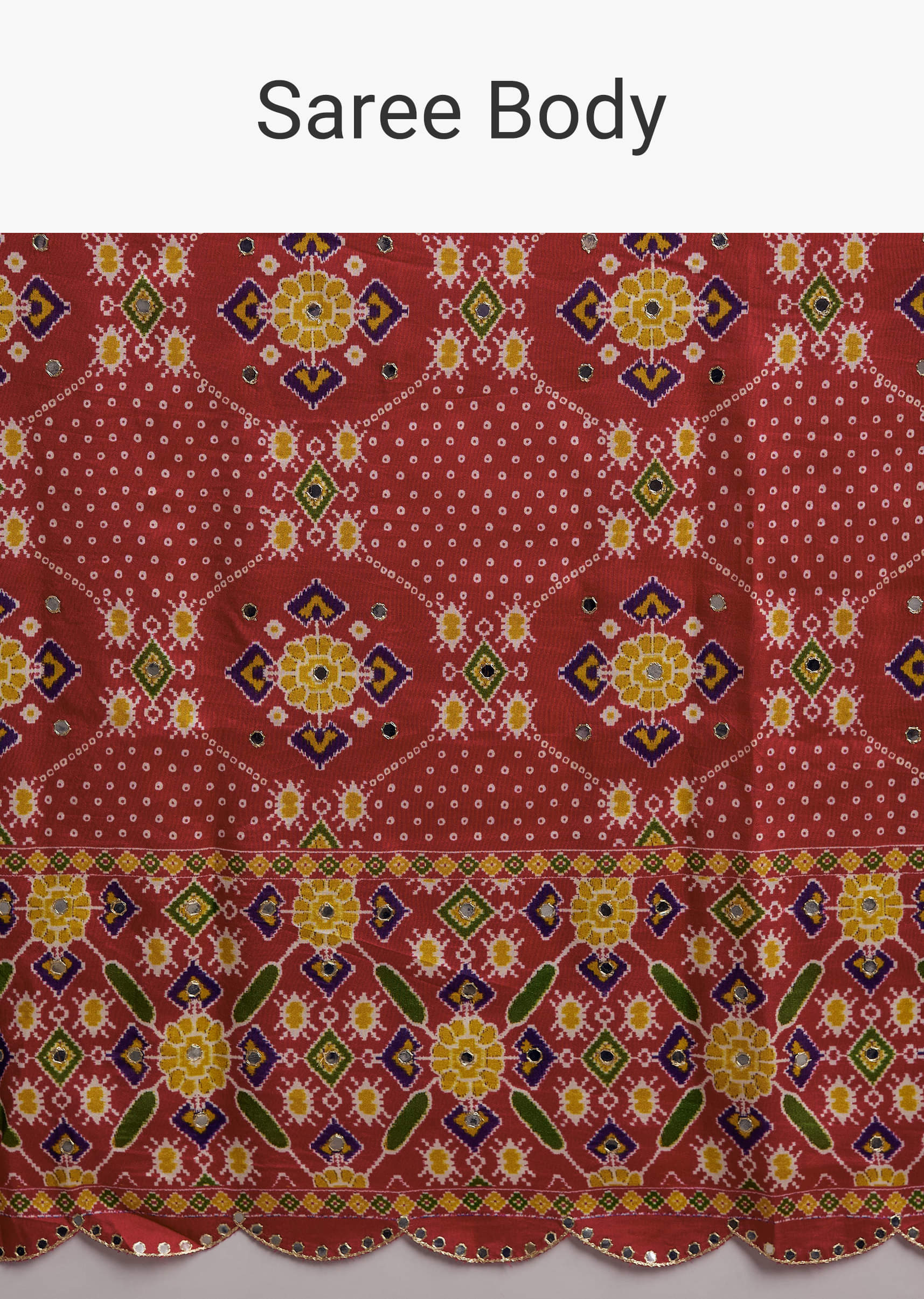 Rani Pink Satin Saree With Handwoven Ikat Print And Mirror Work