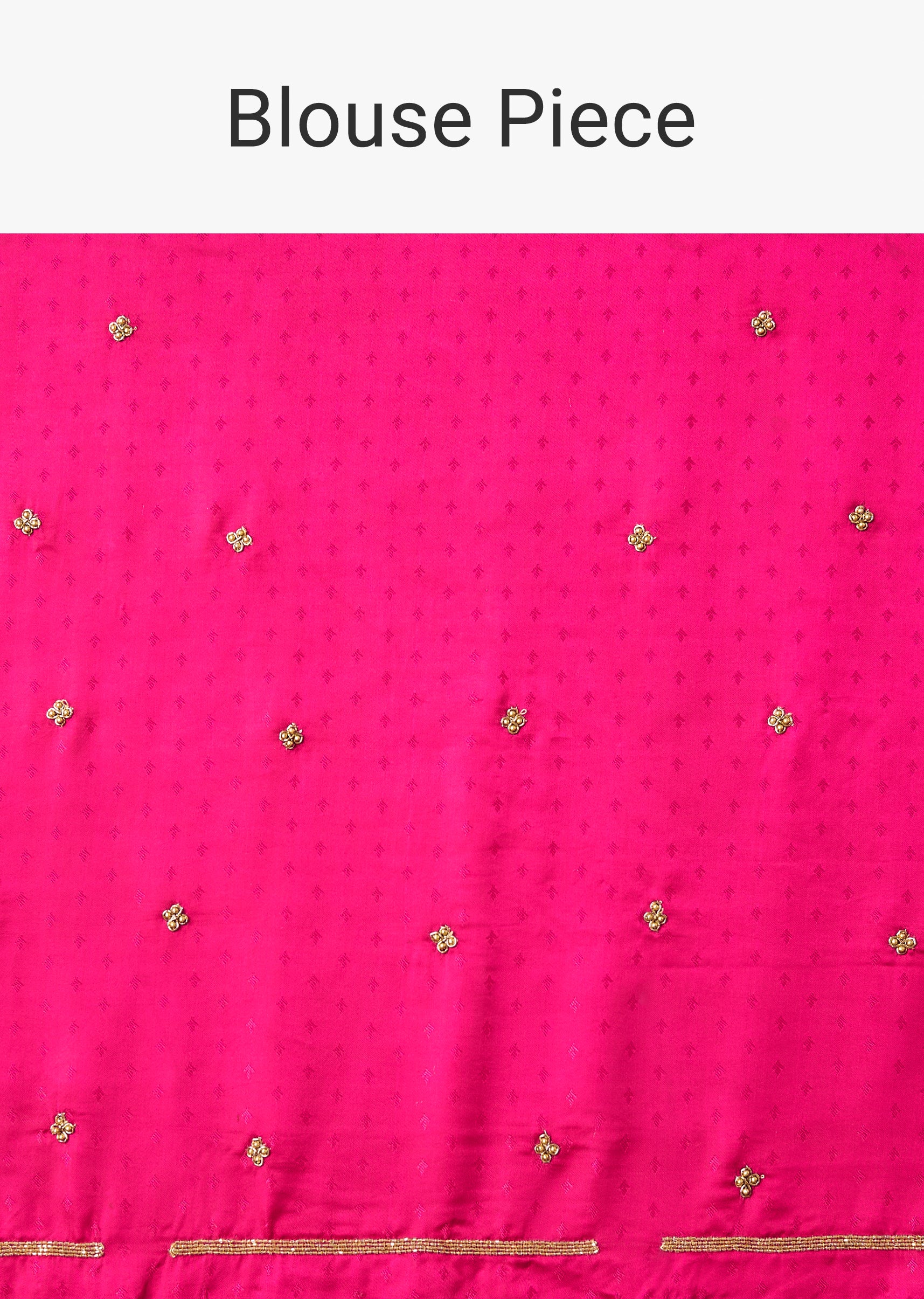 Rani Pink Zardosi Embroidered Saree With Unstitched Blouse