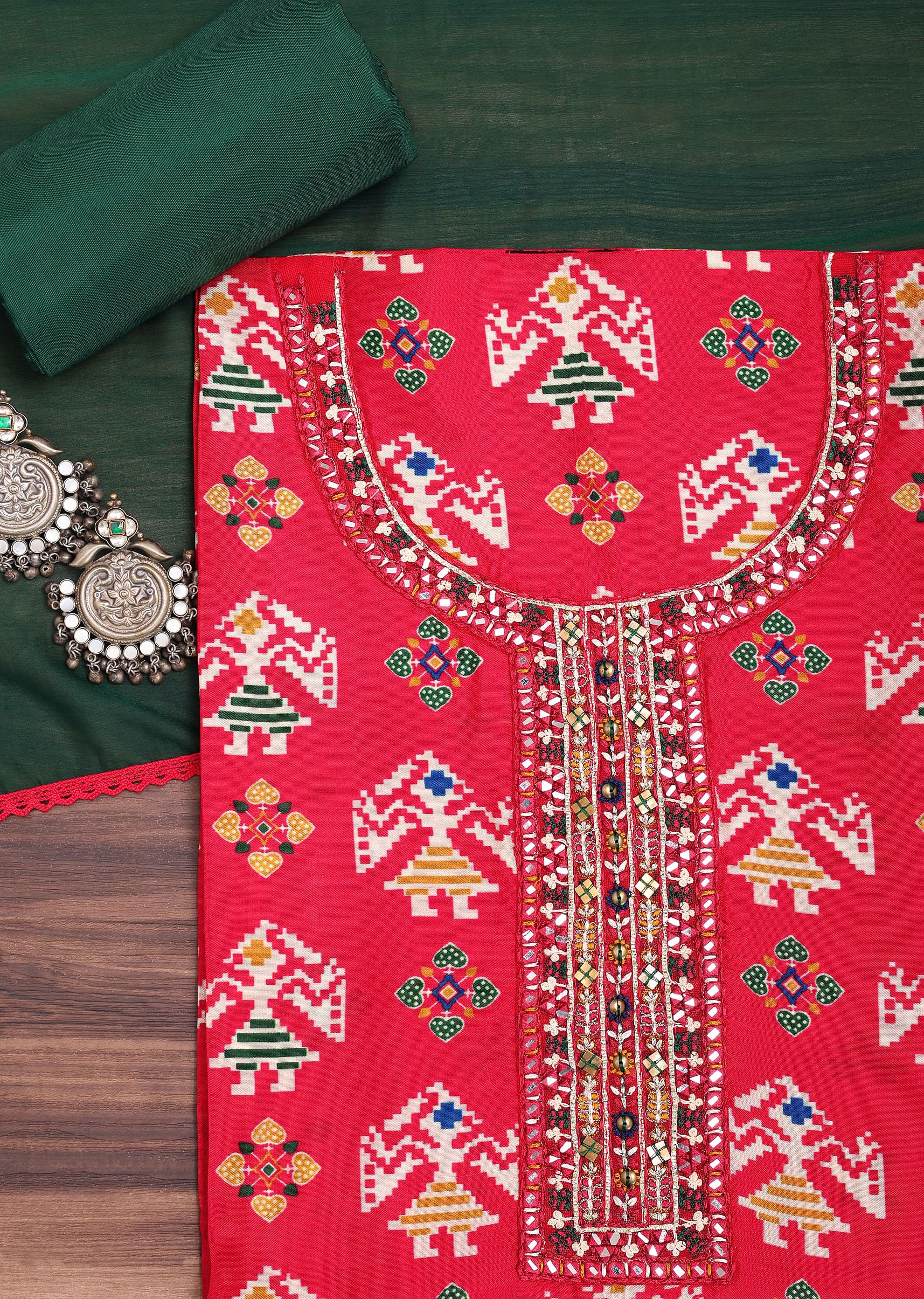 - The Red and Green tussar silk dress material is a vibrant and elegant choice.
