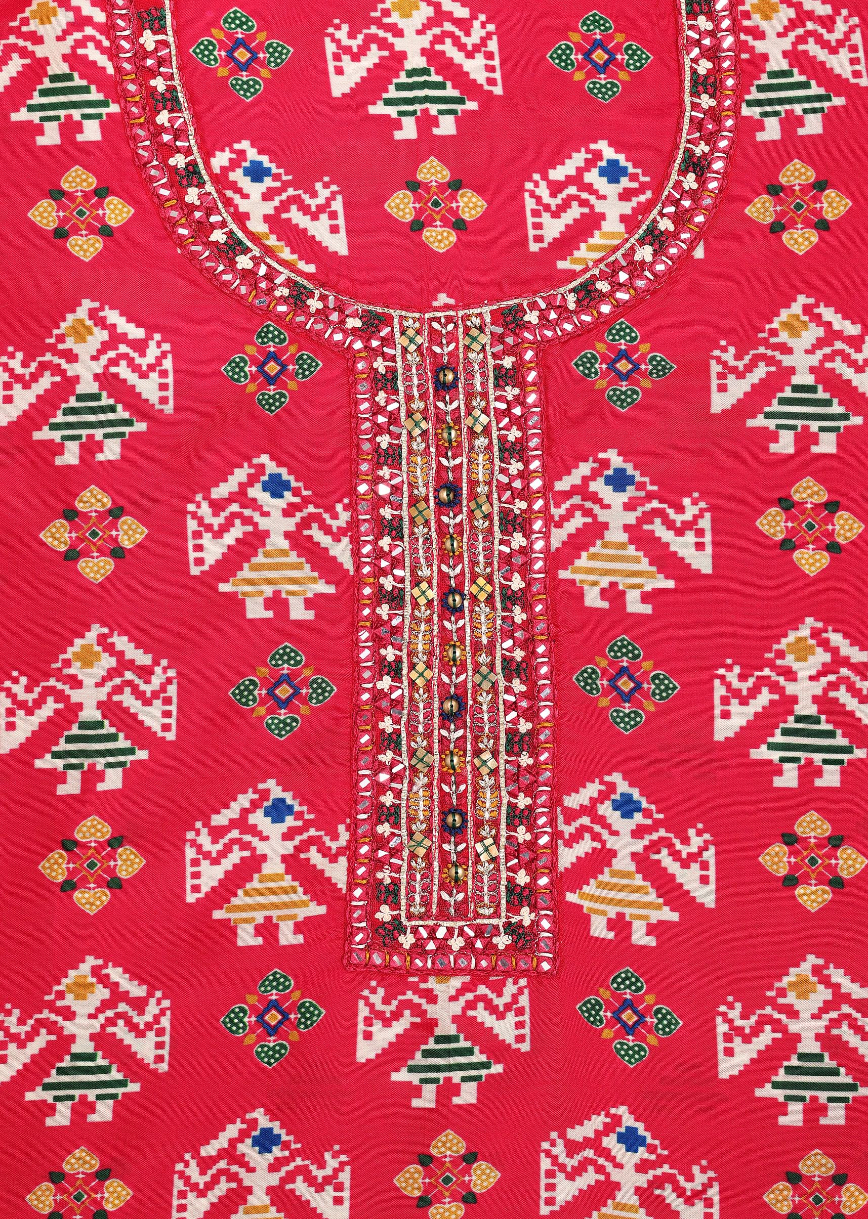- It includes one unstitched kurta fabric, one bottom fabric and one dupatta.