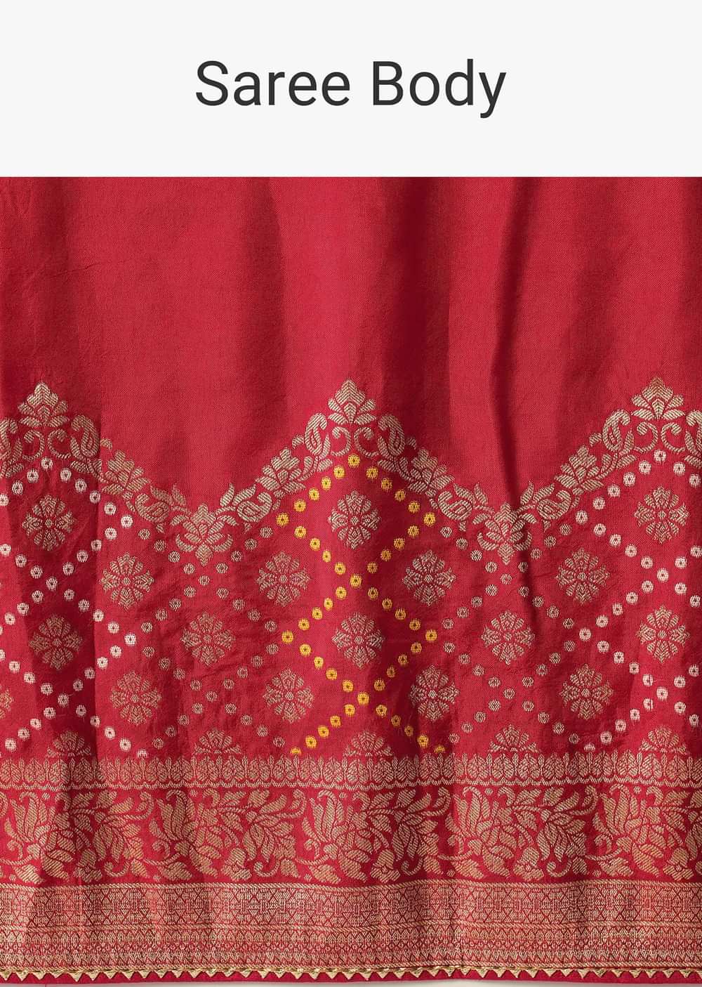 Red Bandhani Weave Saree In Silk With Unstitched Blouse Piece