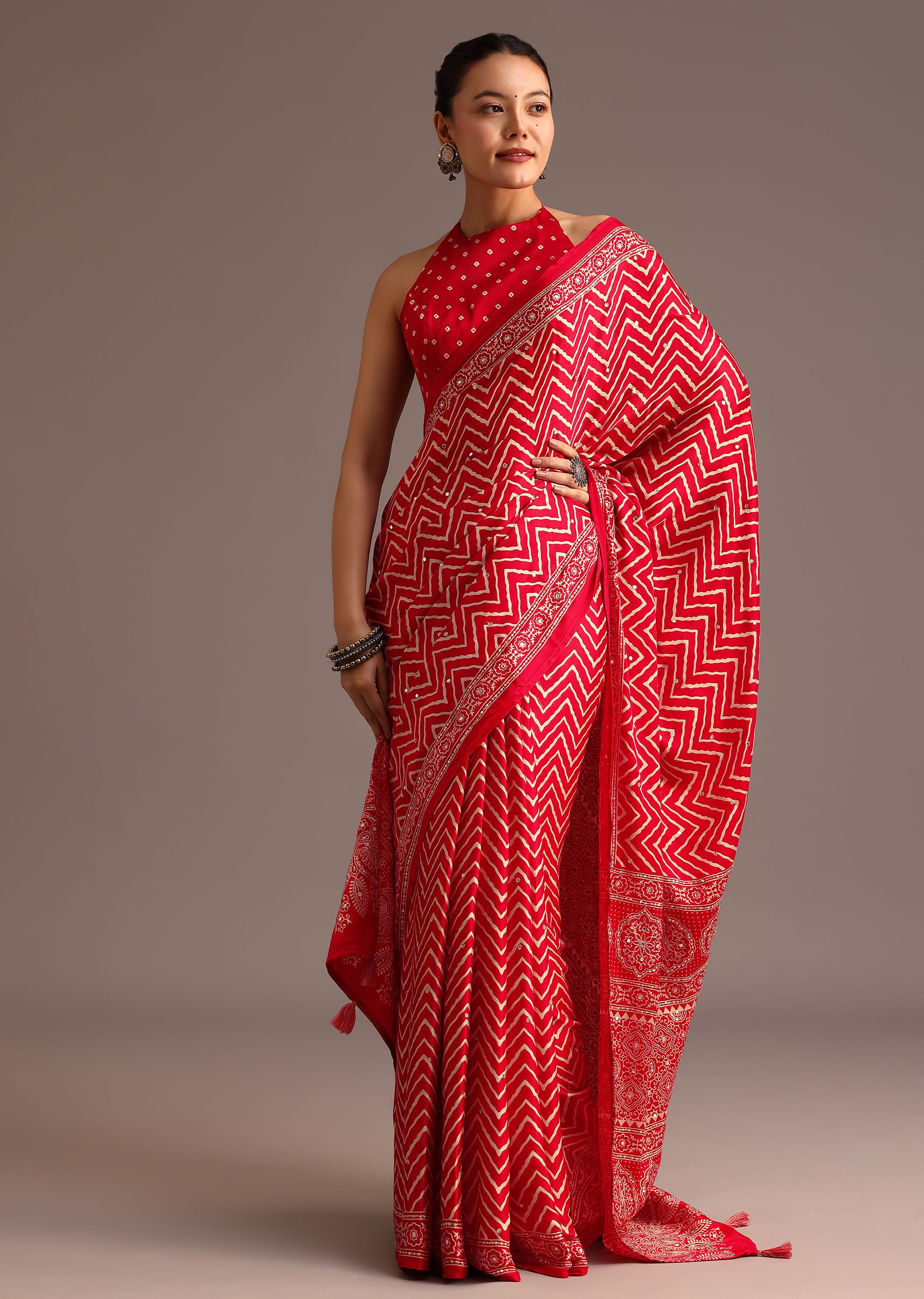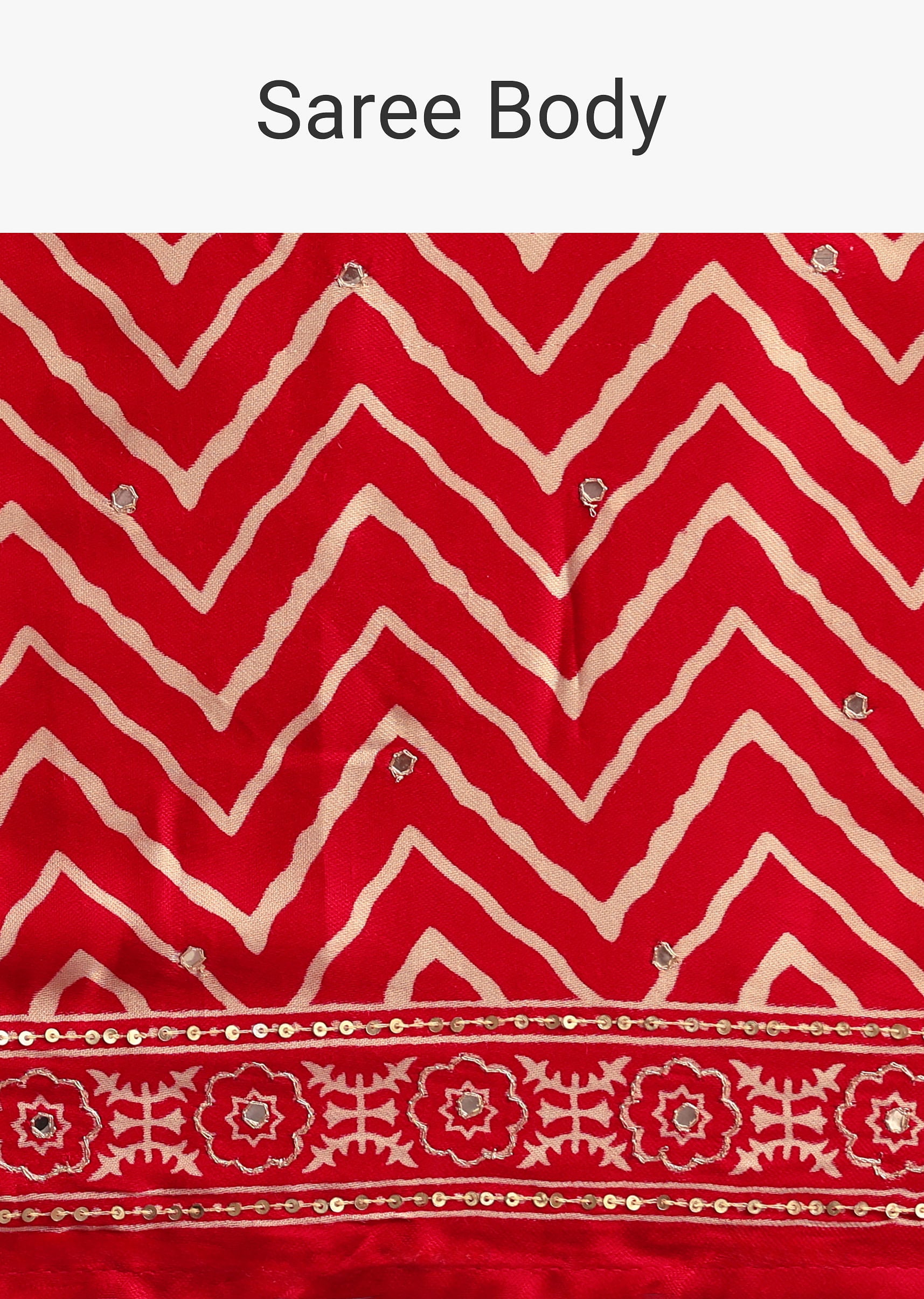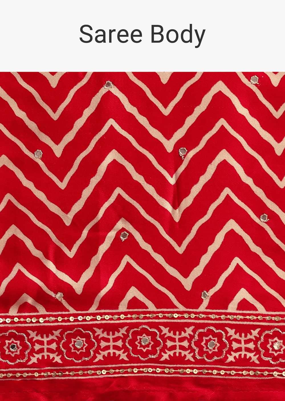 This stunning saree is made from smooth, luxurious satin fabric, offering a graceful drape that flatters every silhouette. Featuring a bold chevron print, the design adds a modern touch to... More Product Details