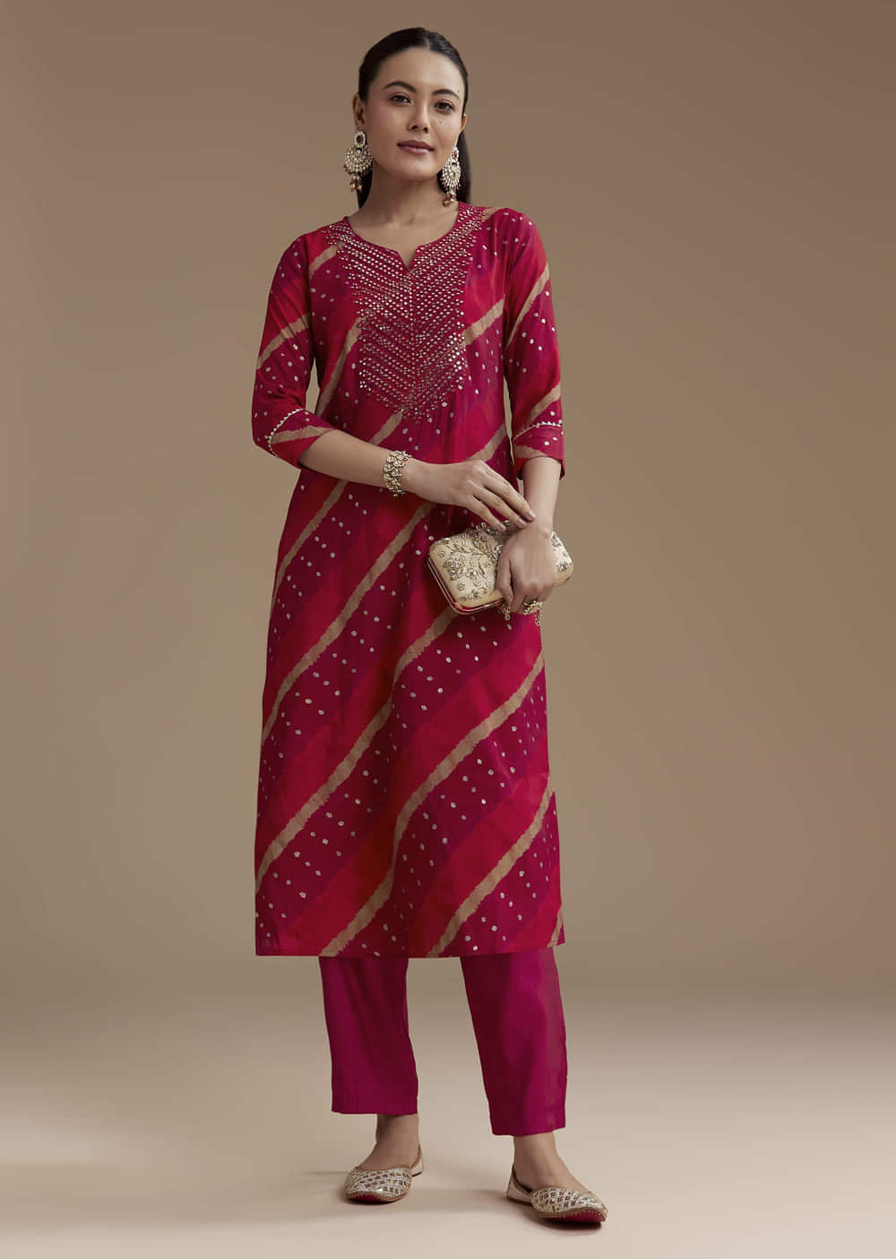 Redefine festive style with this fresh and vibrant red kurta set. Decked with glistening foil mirror work, the striking pops of colour add charm to every family gathering. Perfect for... More Product Details