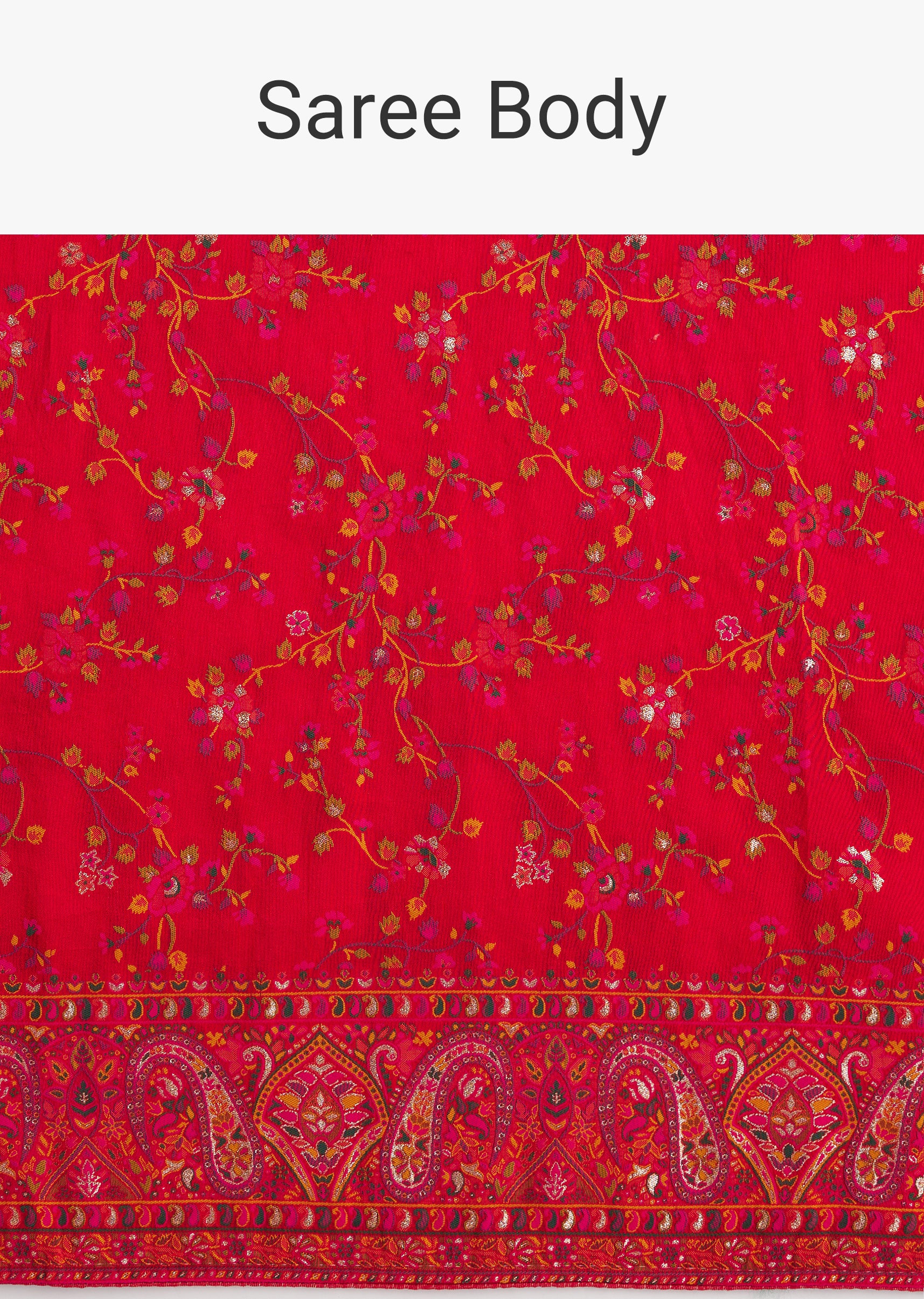 Red Dola Silk Saree With Traditional Floral Amd Jaal Work