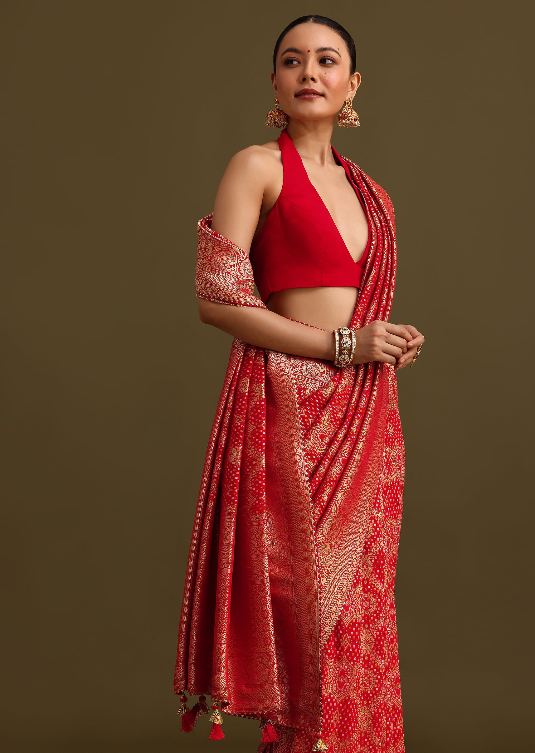 Fit Tips:Drape the saree in a classic Nivi style for a structured and comfortable fit, ensuring the pleats fall evenly.