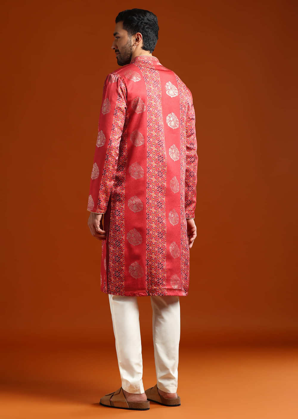 Fit Tips:The men’s kurta keeps a clean shoulder line and easy sleeve bend, and the bottoms hold at the waist with a straight leg for comfortable movement.