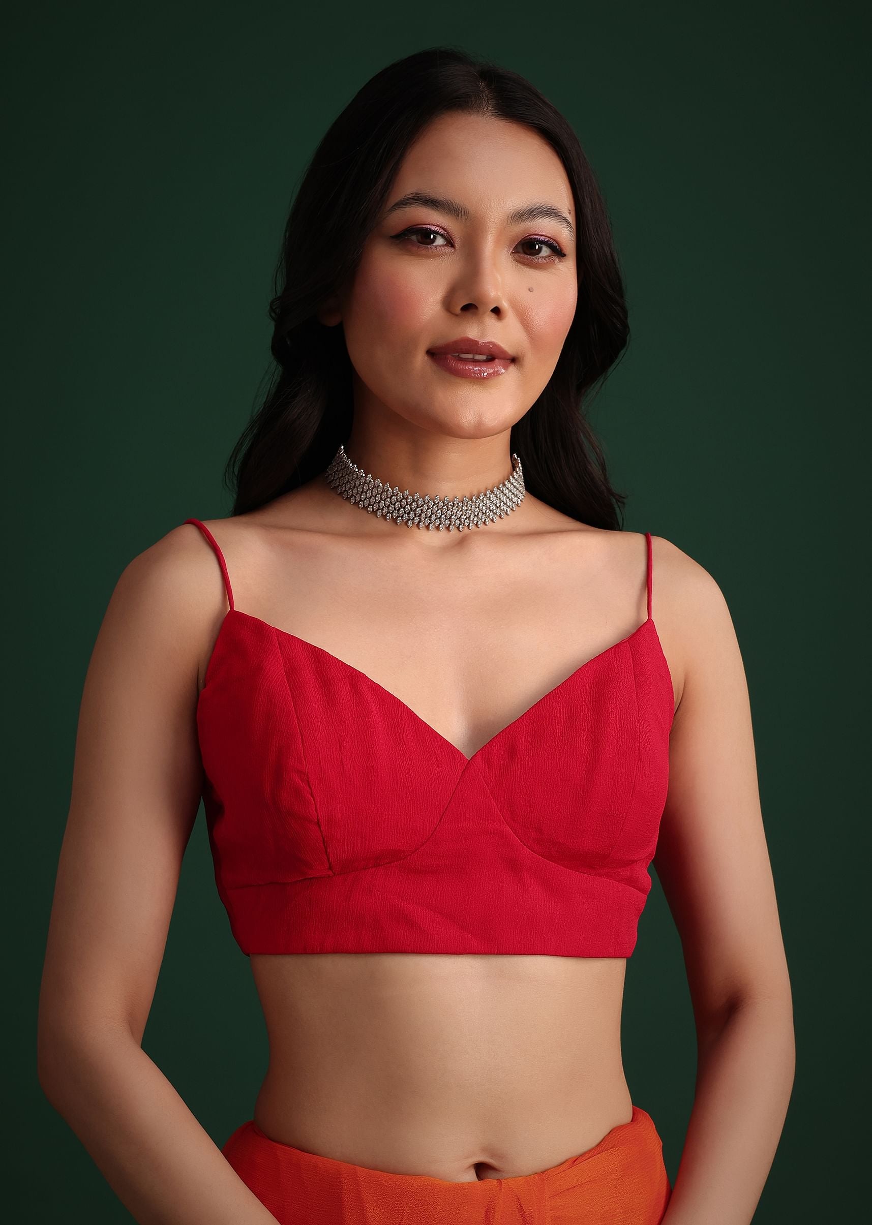 Step into elegance with this exquisite dualtone chinon saree in vibrant red and orange. Heavy embroidery enhances the saree's luxurious appeal while the dual shades create a unique blend of warmth and grace. Ideal for weddings and festive occasions this piece is crafted for the modern woman who appreciates traditional artistry. Awarded as the Most Trusted Brand, we're delivering styles you love, just as promised.