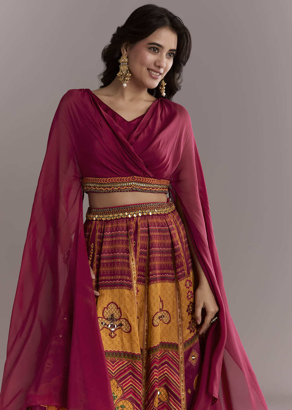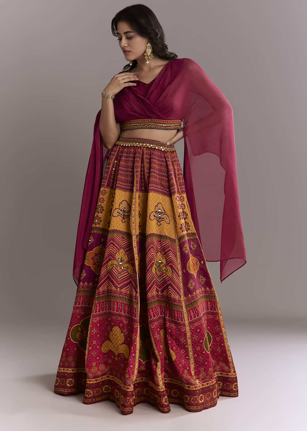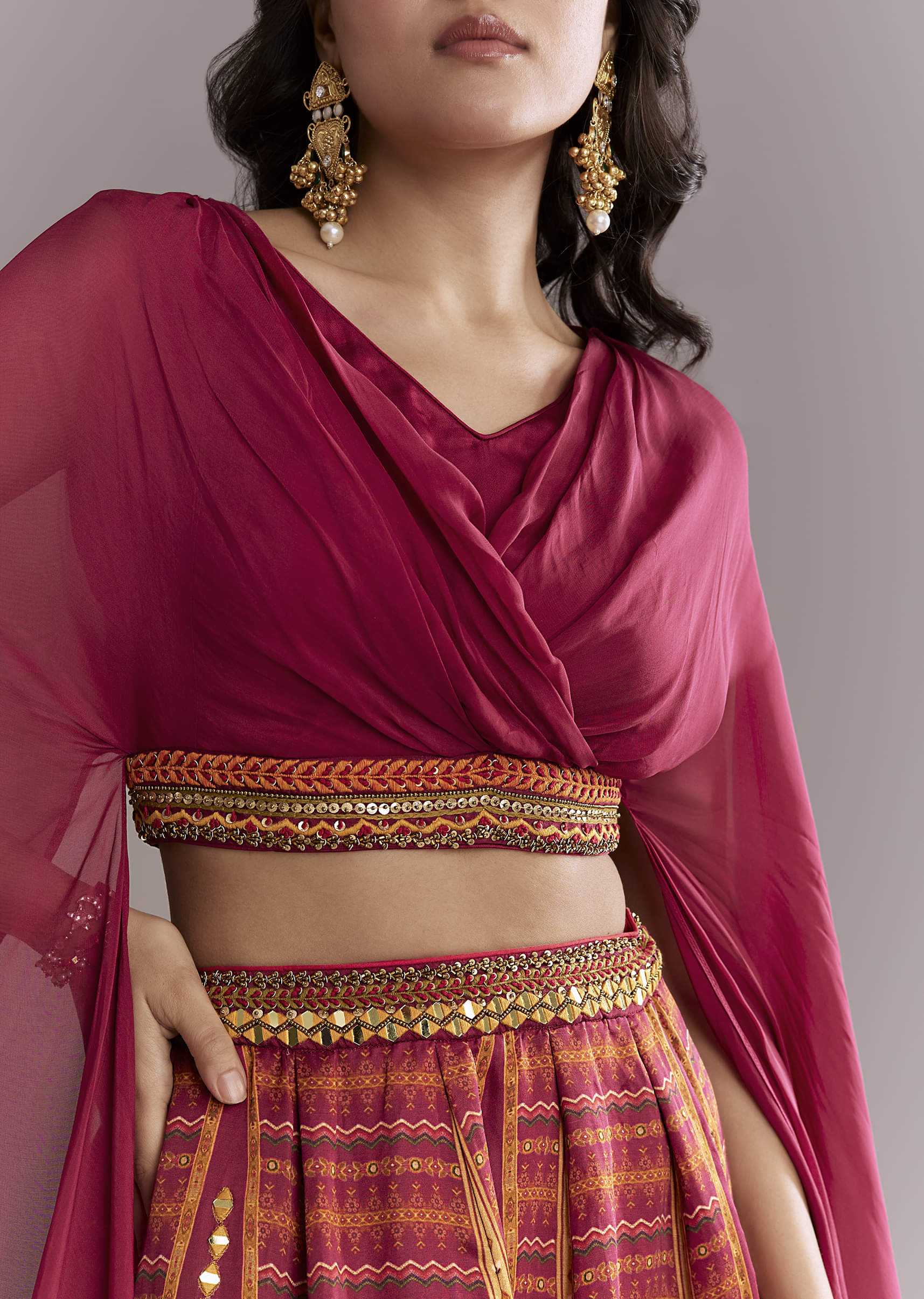 For bright, twirl-friendly moments, this red organza crop top and printed skirt set brings mirror accents that catch light without feeling heavy. The cropped top and airy printed skirt keep... More Product Details