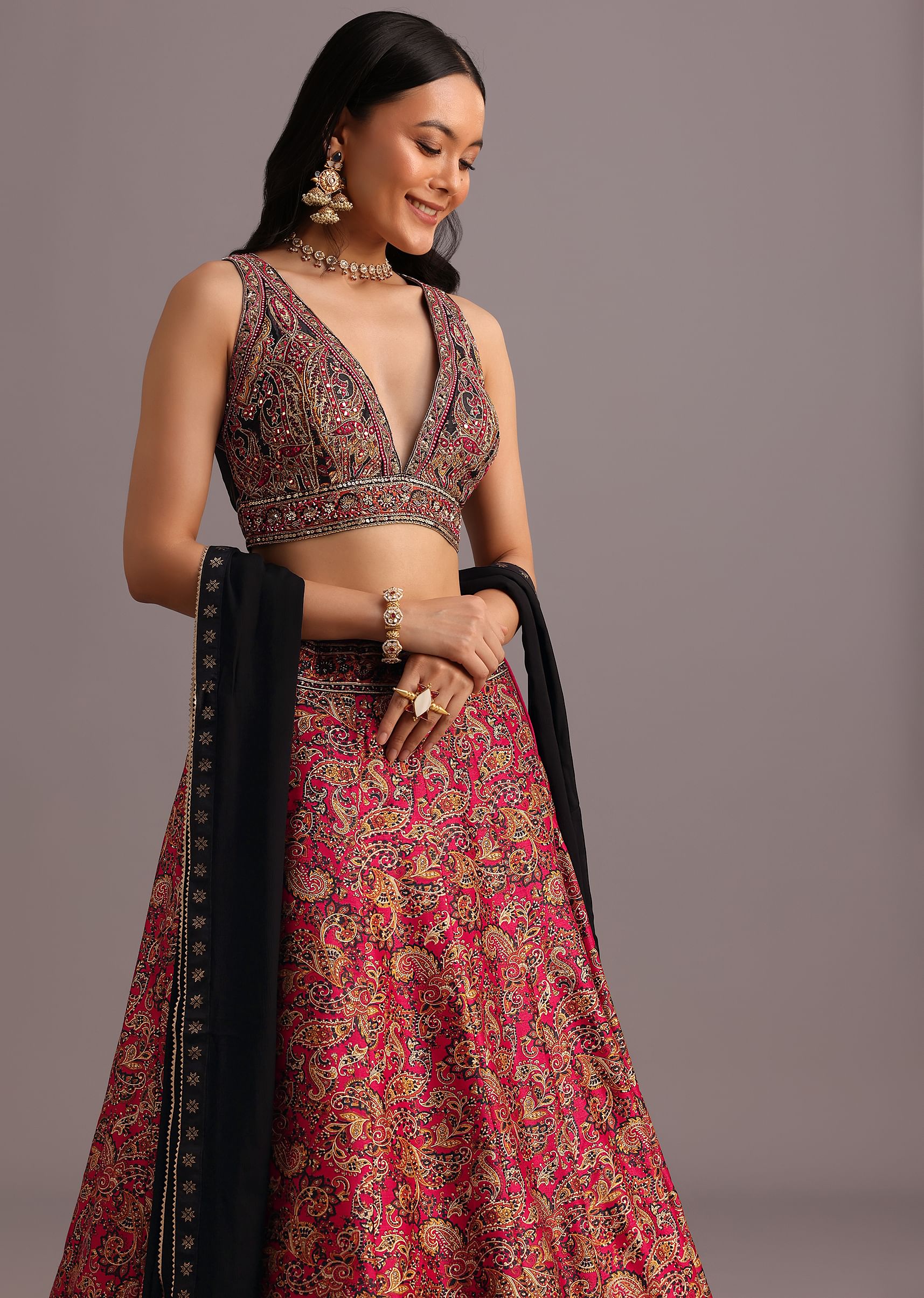 Red Printed Zari Embroidered Lehenga Choli With Dupatta