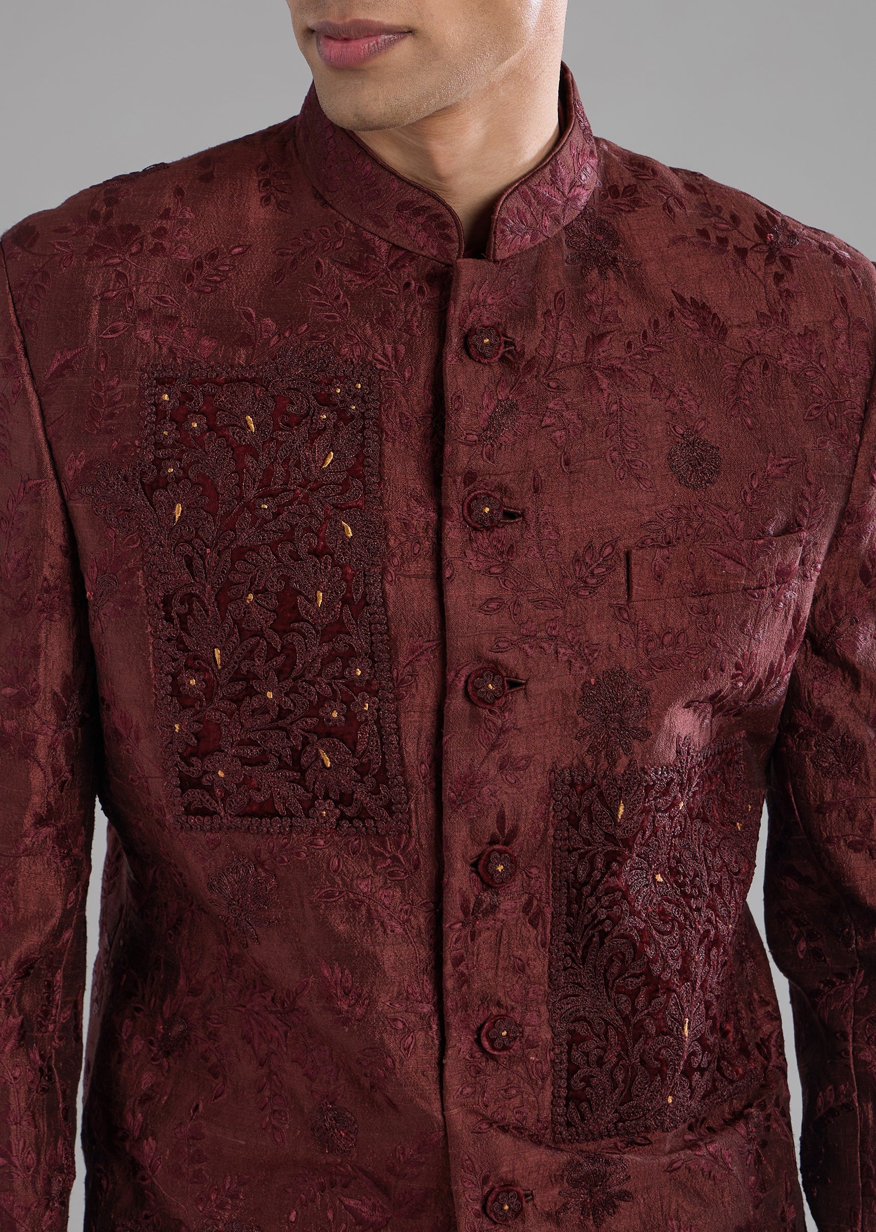Crafted for refined contemporary taste, this raw silk indo western kurta set blends traditional craftsmanship with modern structure. The kurta features intricate thread, resham, and dori work that adds depth and artisanal detail to the design. Full sleeves and a mandarin collar lend a sharp, elegant finish, while the rich raw silk fabric enhances its luxurious appeal. Paired with coordinated pants, this ensemble is ideal for festive occasions, weddings, and sophisticated celebrations.Awarded as the Most Trusted Brand, we're delivering styles you love, just as promised.