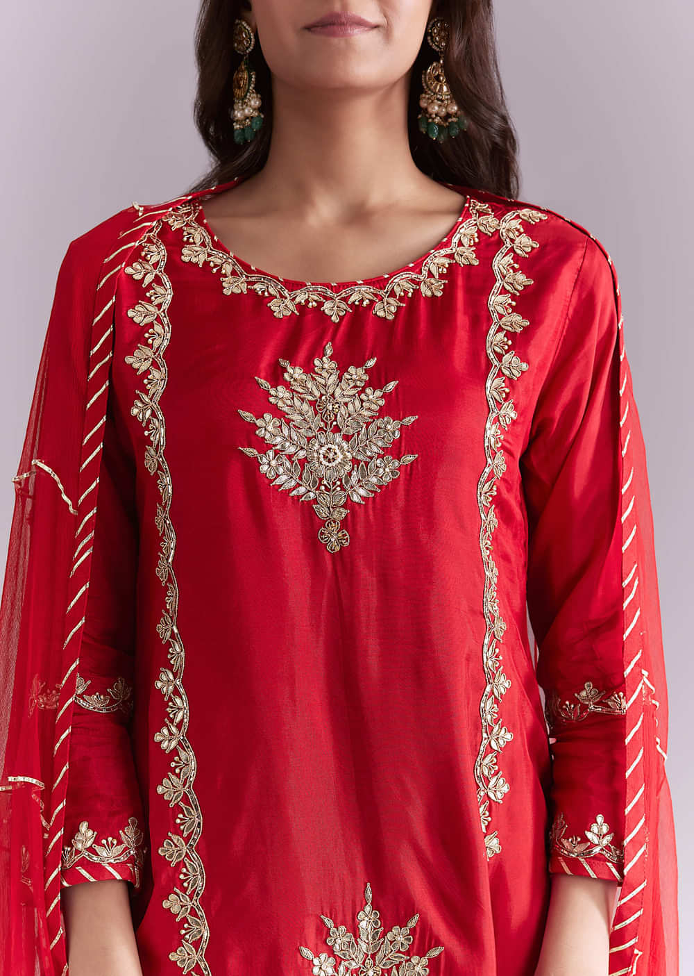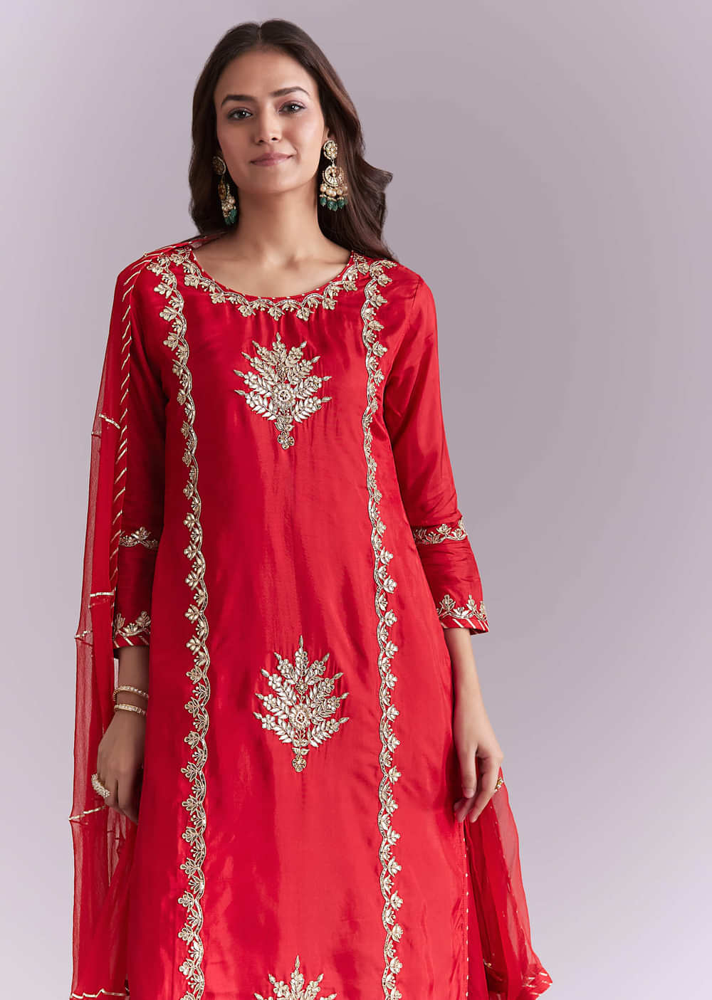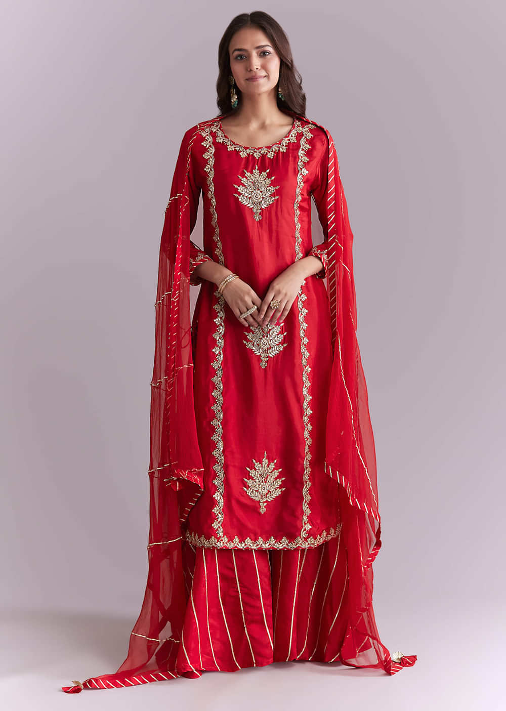 Red Silk Palazzo Suit With Gota Work
