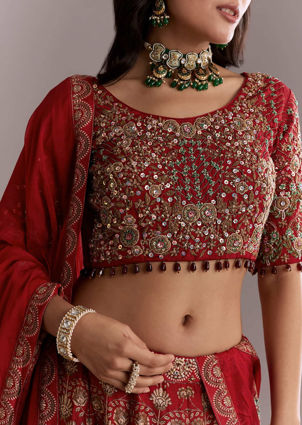 Fit Tips:The choli should feel close and supportive, and the lehenga should sit mid-waist with a full, comfortable swirl.