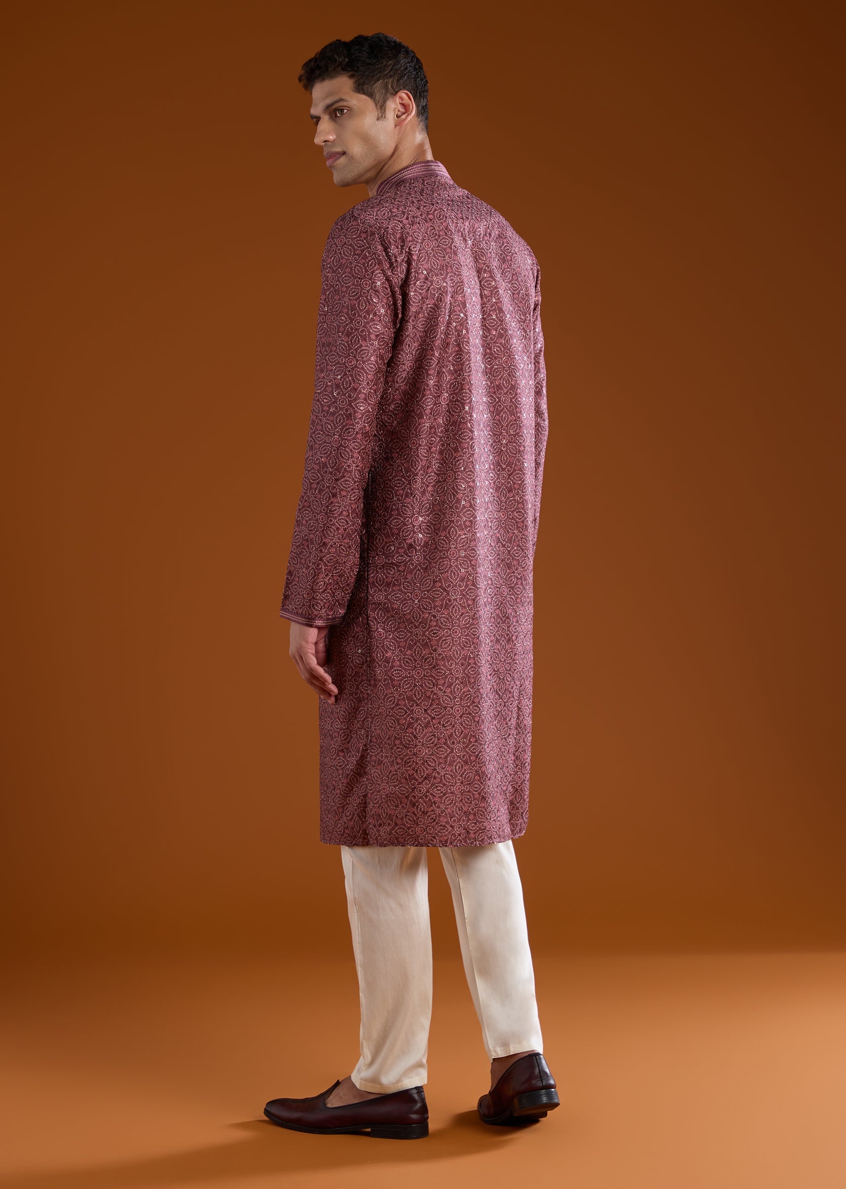 Bring classic elegance to any celebration with this silk kurta set enhanced with refined resham thread work that adds subtle traditional charm. The full sleeve kurta features a crisp mandarin... More Product Details