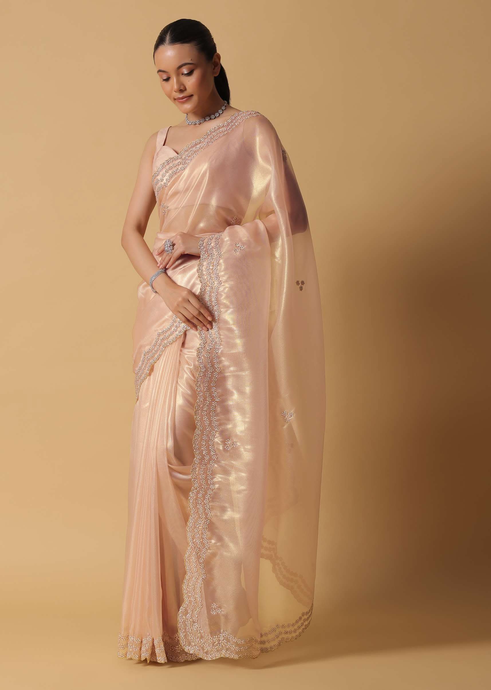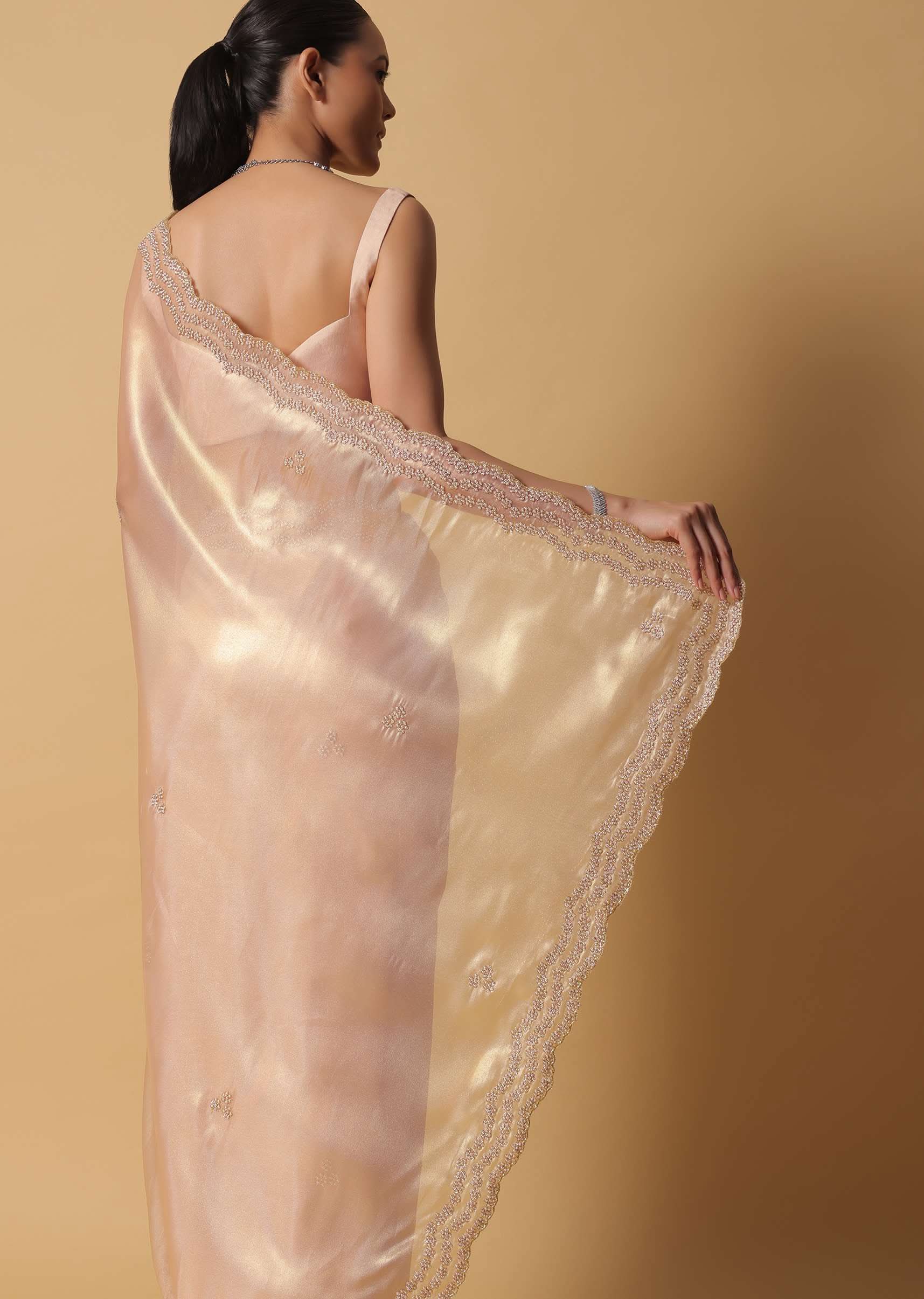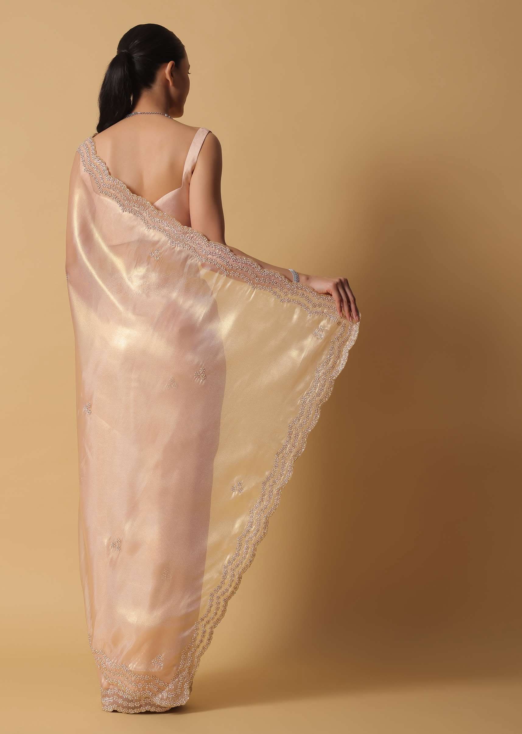 Rose Gold Toned Foil Saree In Tissue With Cut Dana Embroidered Borders