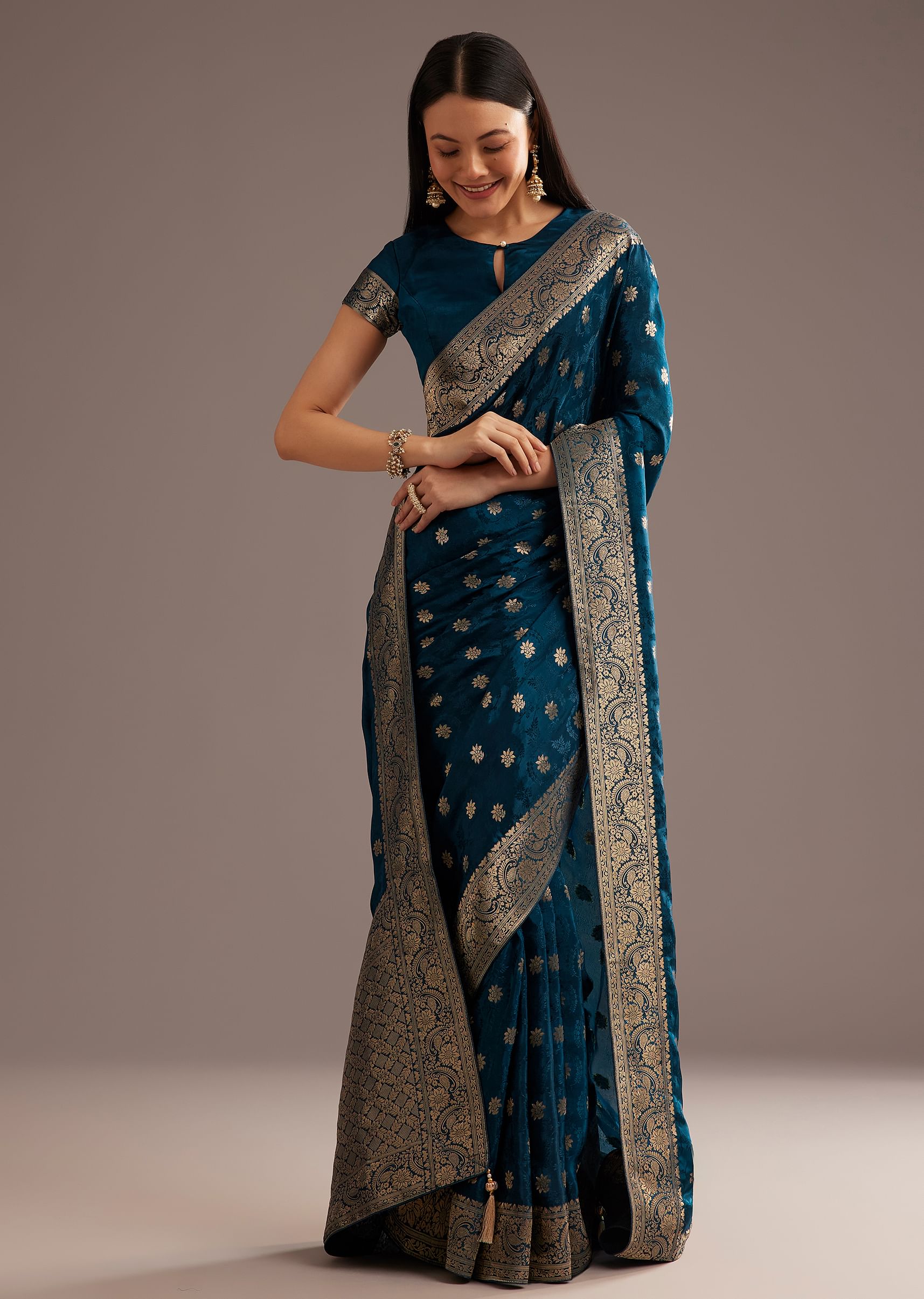 Embrace Opulence With This Royal Blue Jaquard Silk Saree Beautifully Crafted With Zari Woven Butti And A Brocade Border Pallu. Its Luxurious Design And Rich Color Make It A Splendid Choice For Grand Occasions And Special Celebrations.Awarded As The Most Trusted Brand We'Re Delivering Styles You Love Just As Promised.