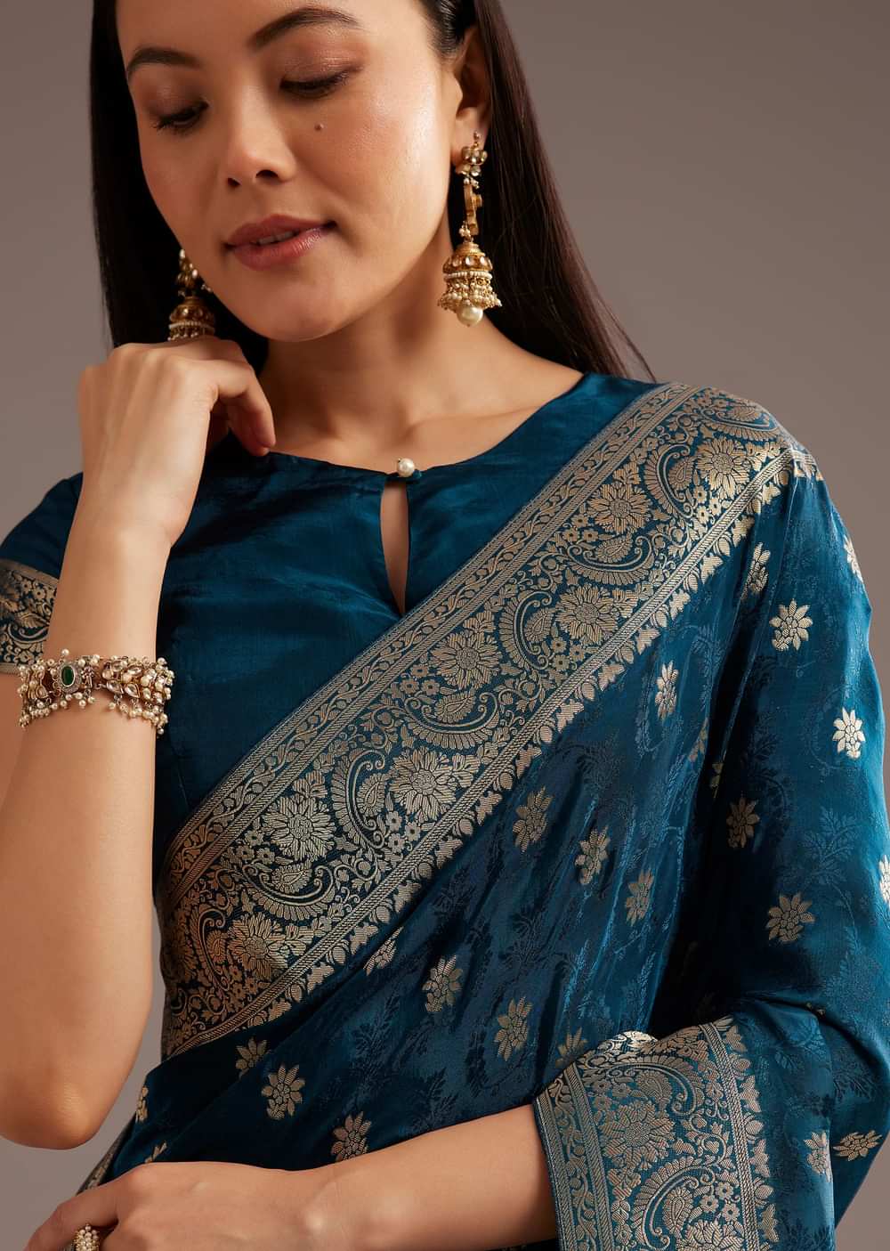 Match With Antique Gold Accessories For A Majestic Look.