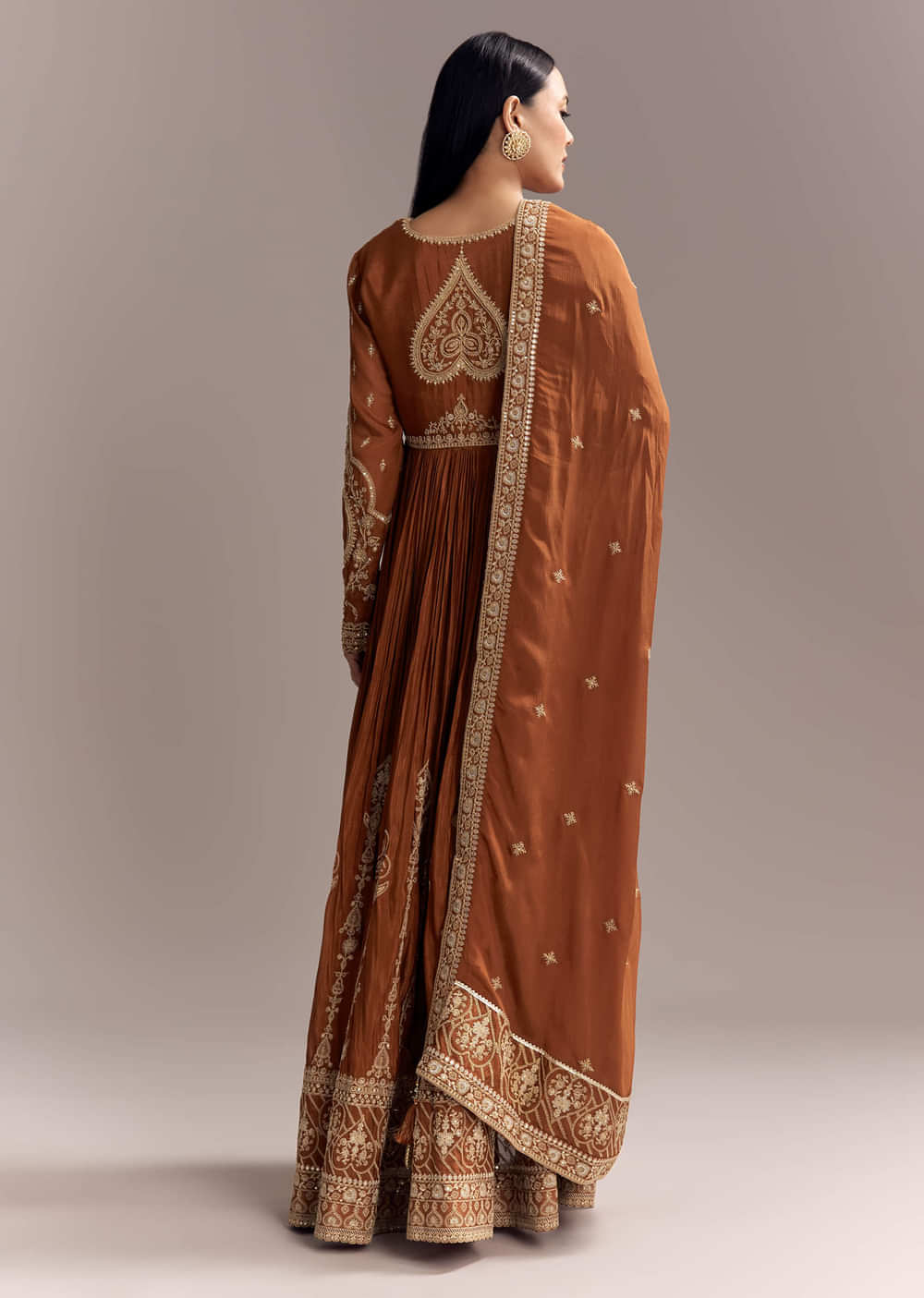 Rust Chinon Anarkali Suit With Heavy Embroidery