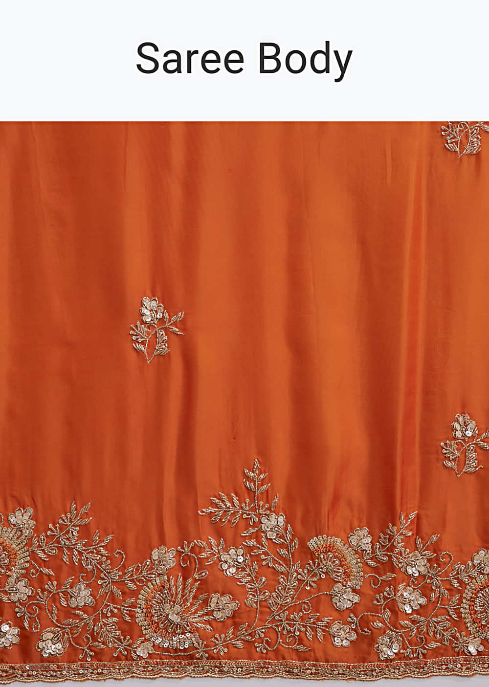 Rust Orange Satin Saree With Heavy Hand Embroidery