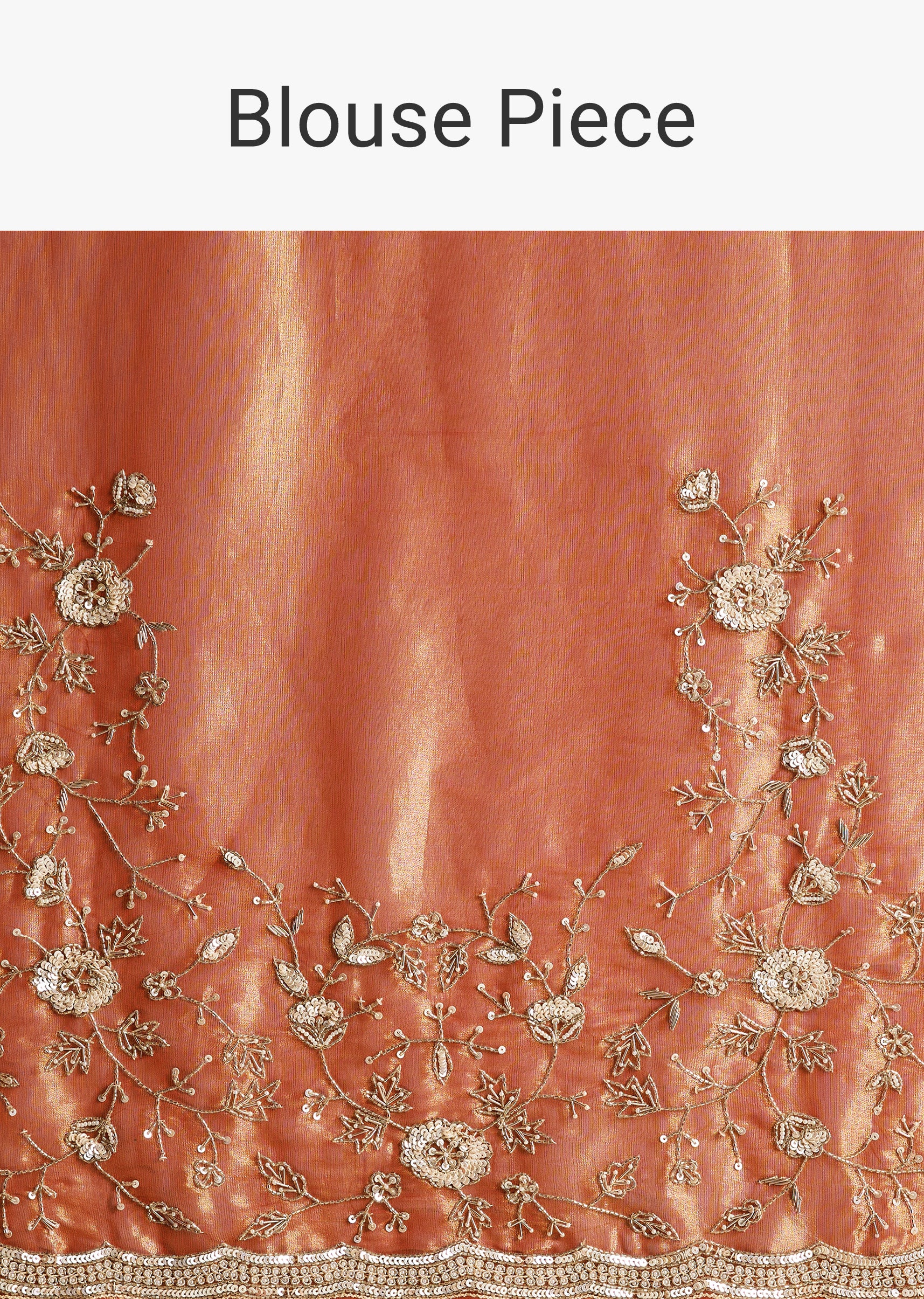 Rust Pink Tissue Saree With Zardosi Cutdana Embroidery