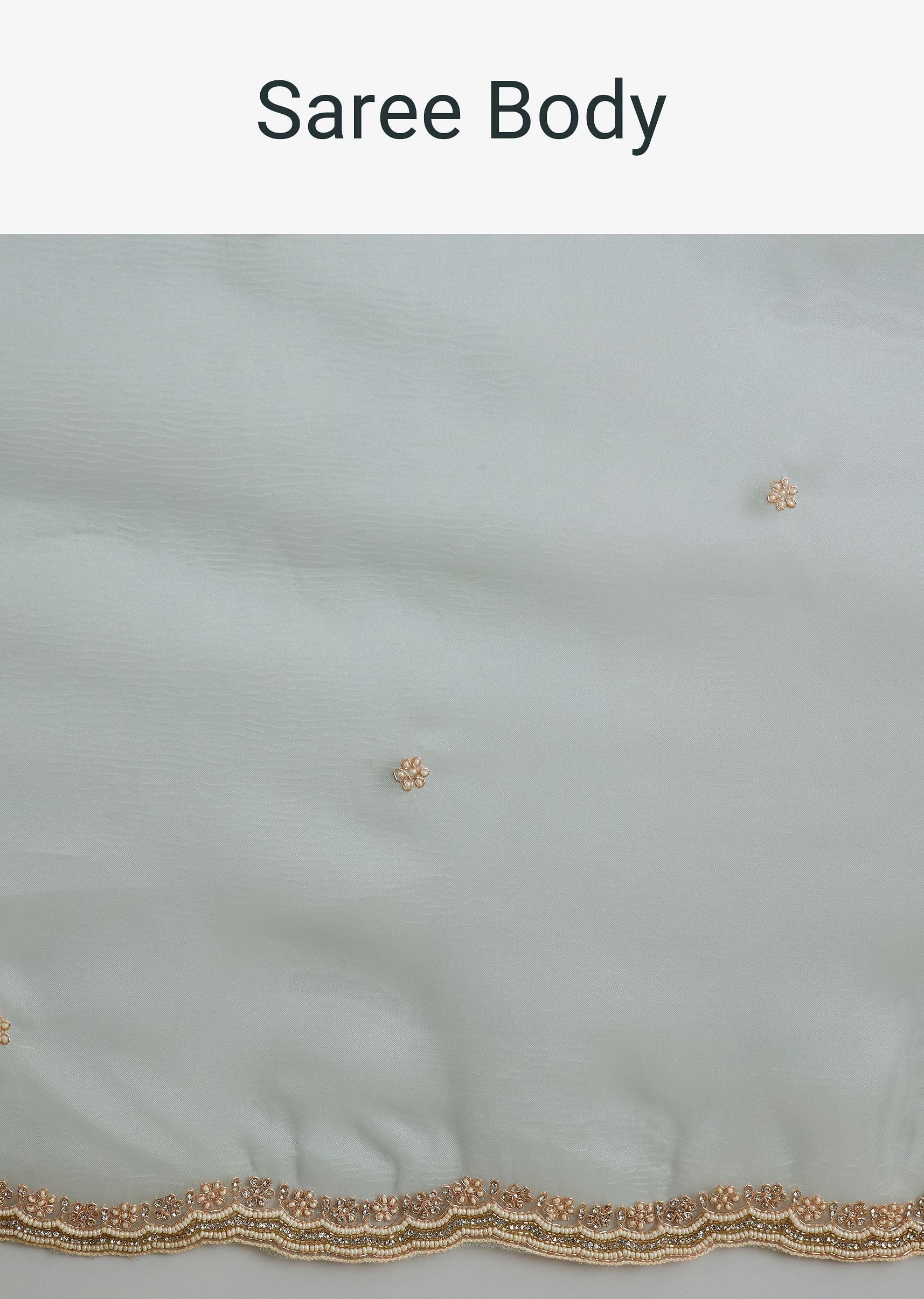 Sea Green Crush Tissue Saree With Stone And Moti Embroidery And Scallop Border