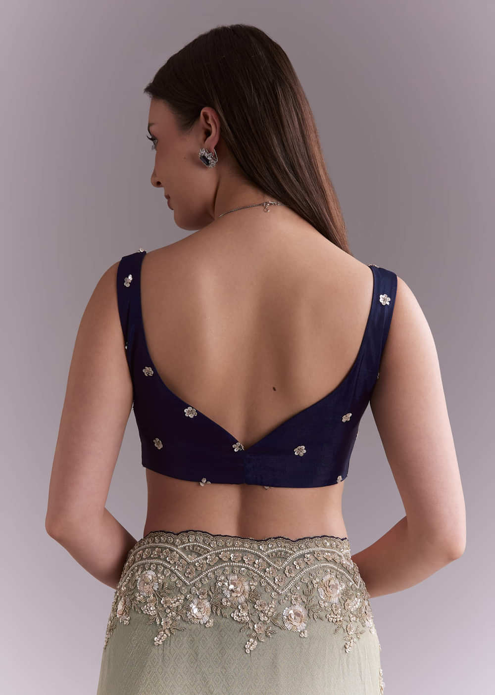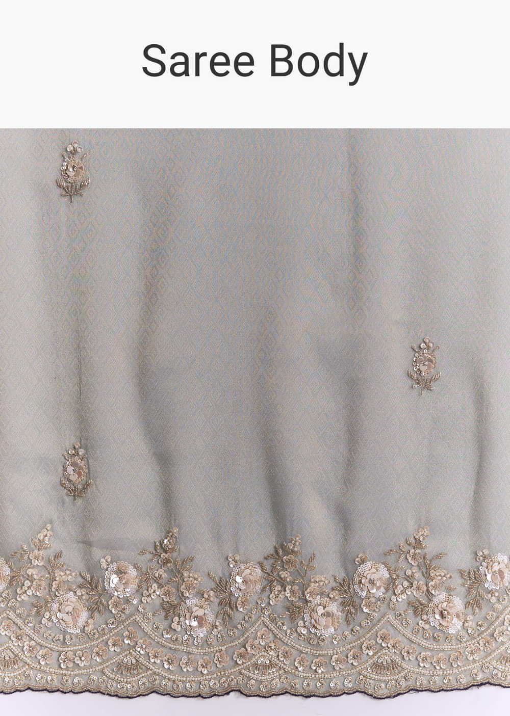 Sea Green Tissue Embroidered Saree With Floral Buttis