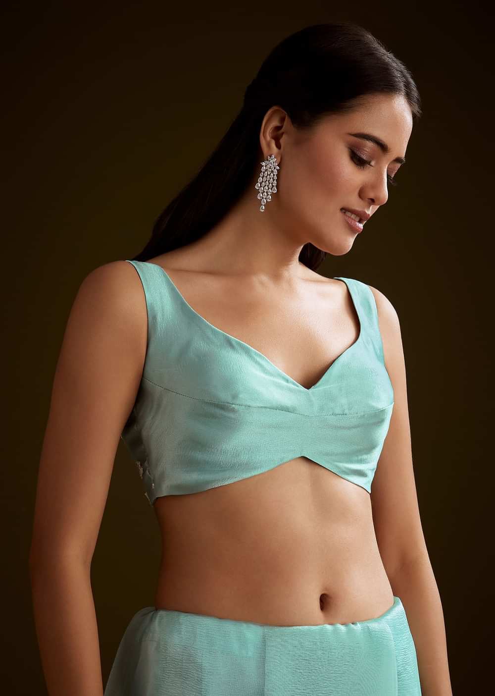Embrace timeless elegance with this Sea Green Tissue Saree adorned with intricate floral embroidery. The delicate cutdana and sequins work enhances the airy tissue fabric, giving it a subtle yet... More Product Details